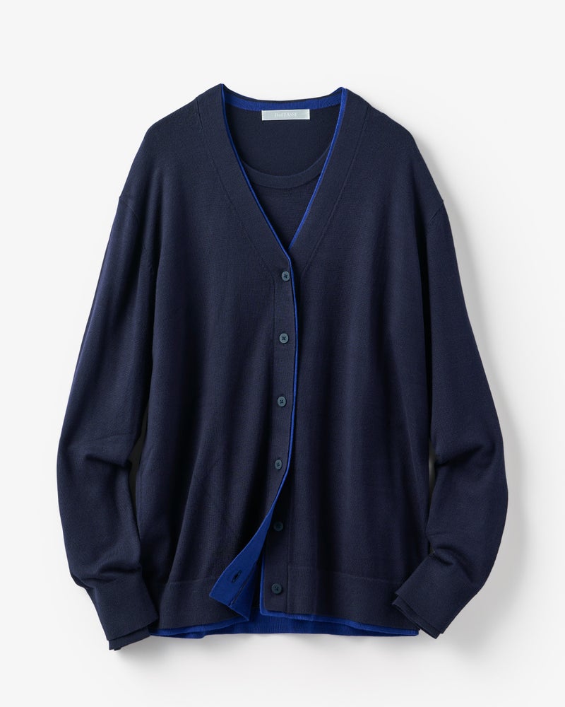 短めのカーデが欲しくて探していたところ、セーター付きでお得だったので購入。カーデのほんのり入った配色が派手すぎず、さりげなくおしゃれで気に入っています。セットで着るだけでコーディネートが決まるので、忙しい朝の時短になります。バラして着回せる点も優秀◎ もっちりした着心地が大変良く、ストレスなく着られるので、長いシーズンでヘビロテできそうです。