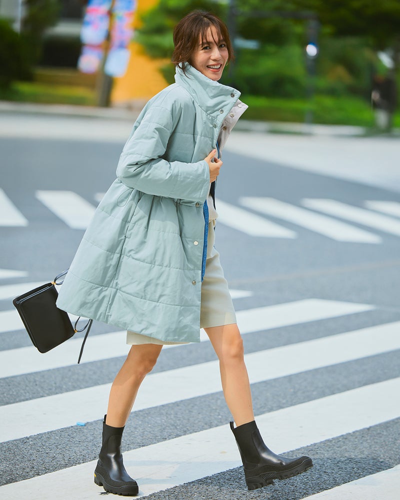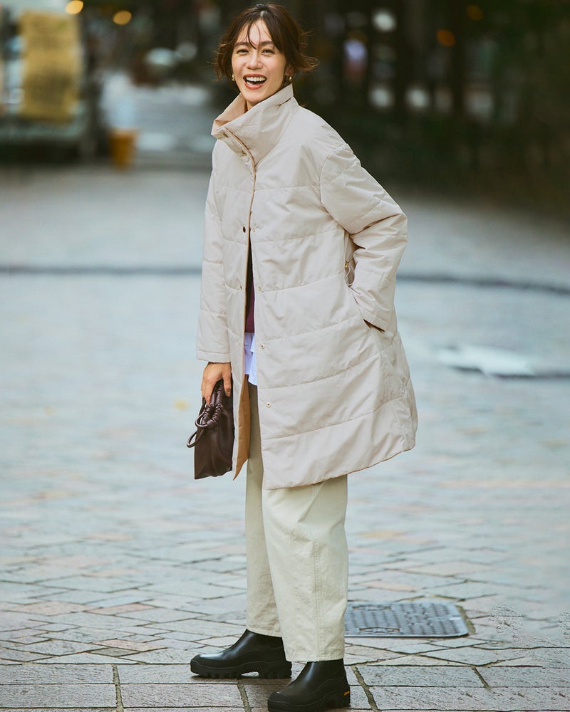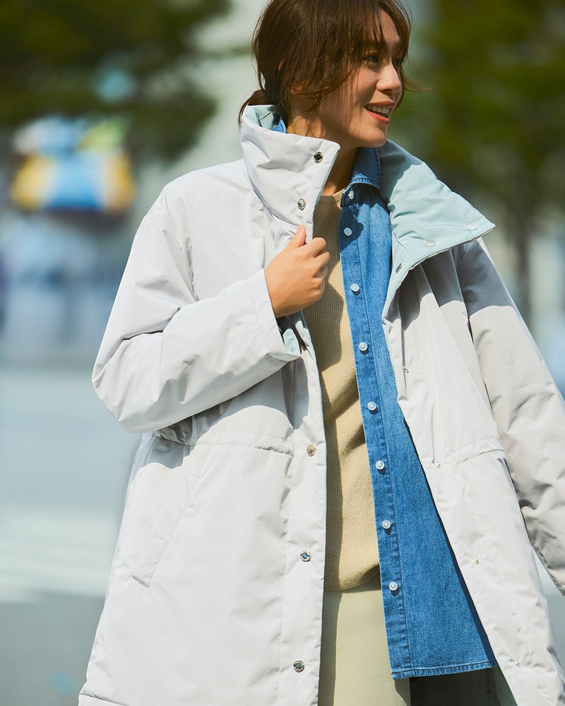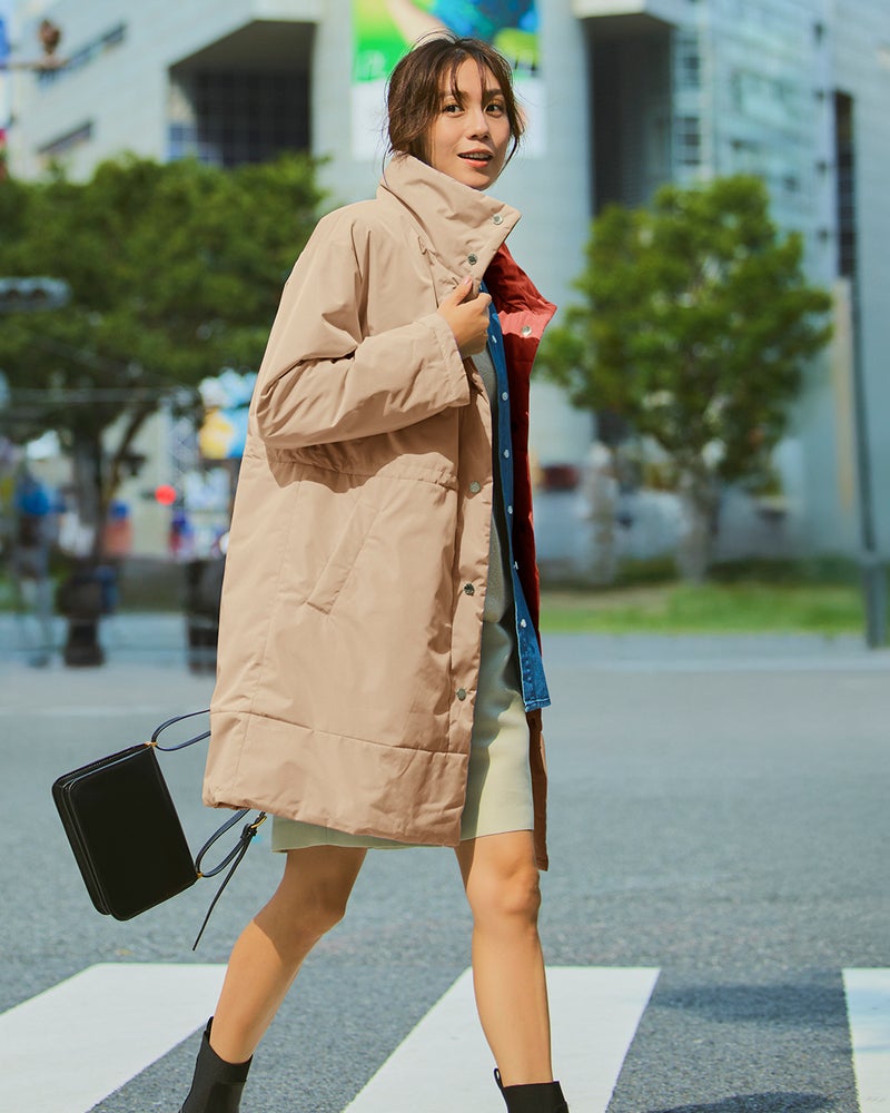 手持ちのコートはフード付きのものが多いので、スタンドネックのスッキリした感じも良かったです。