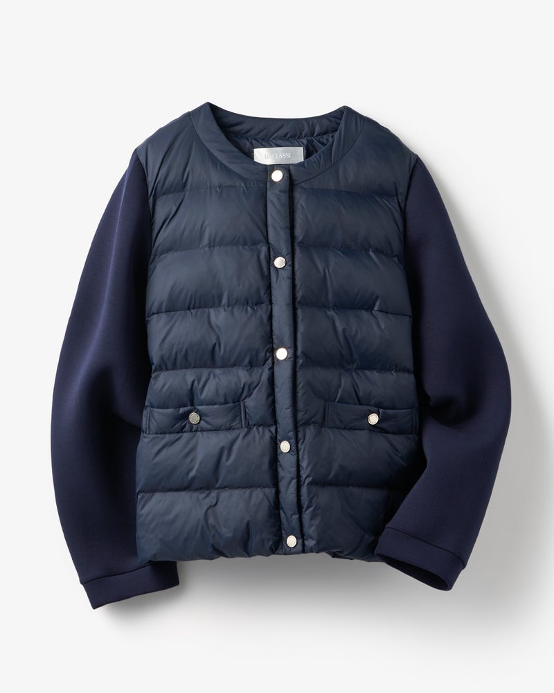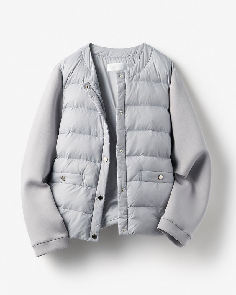 異素材エコダウン・ノーカラージャケット