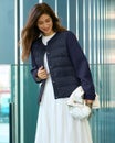 前後の身頃はエコダウン(中綿)入りのタフタ素材、袖部分はダンボールジャージー素材で切り替えたコンビデザイン。エコダウンの暖かさを享受しながら、動きやすく、ボリュームを抑えてスマート見え。カーディガン感覚で羽織れるノーカラーとショート丈で、きれいめスタイルにも活躍します。