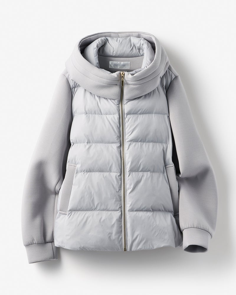 • 異素材エコダウン・フード風ジャケット 詳細画像 ライトグレー 1