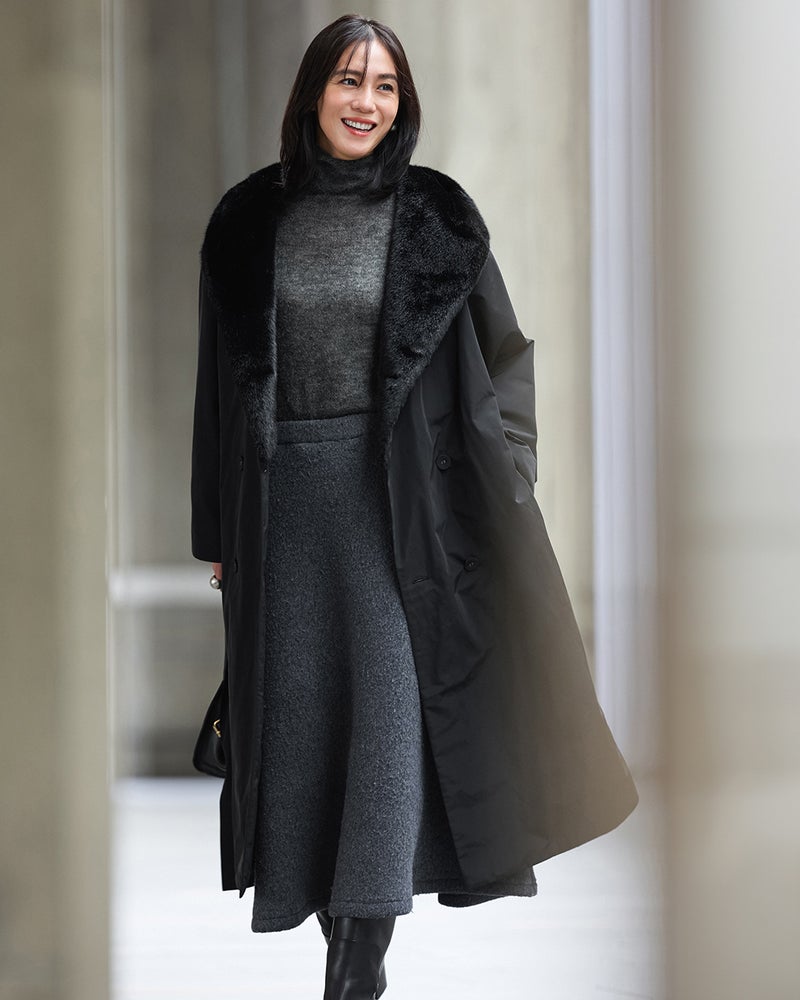 ボリューミーなファー衿がエレガント。