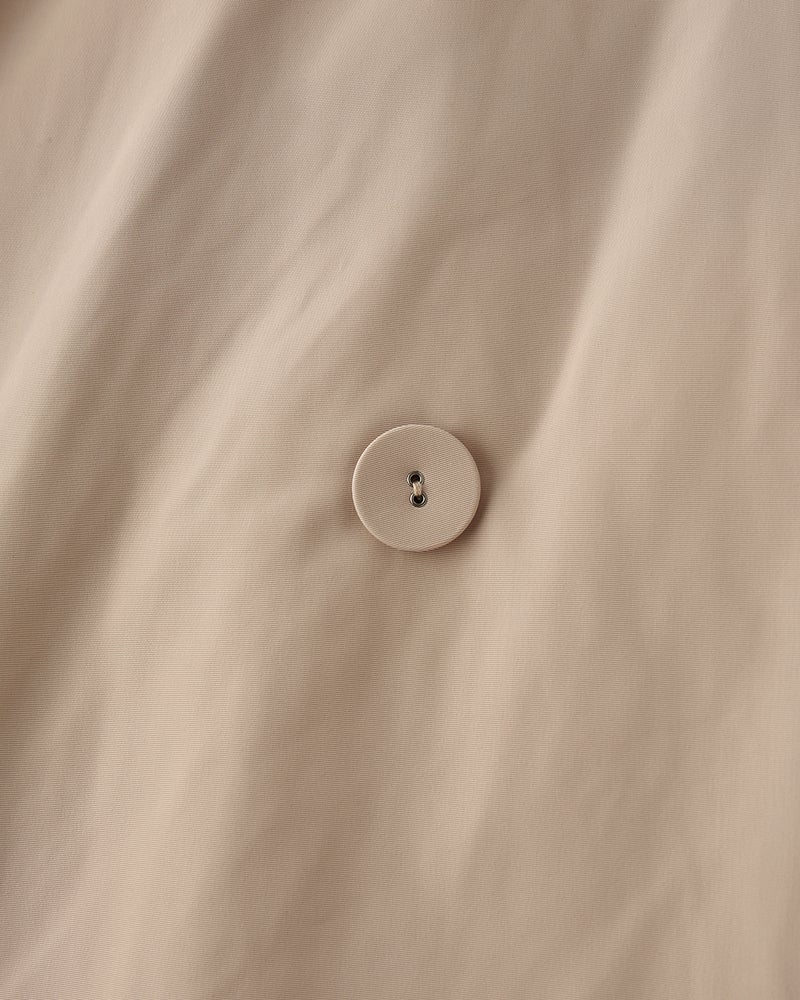 艶とハリのある、グログラン生地でもっと美しく緻密に織りあげた、ハリと艶の美しいグログラン素材をオモテ面に採用。より上質で、フォルムの美しさが際立つ1着に。オモテ面は雨や雪をはじく撥水加工済。