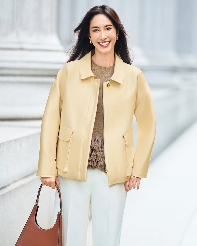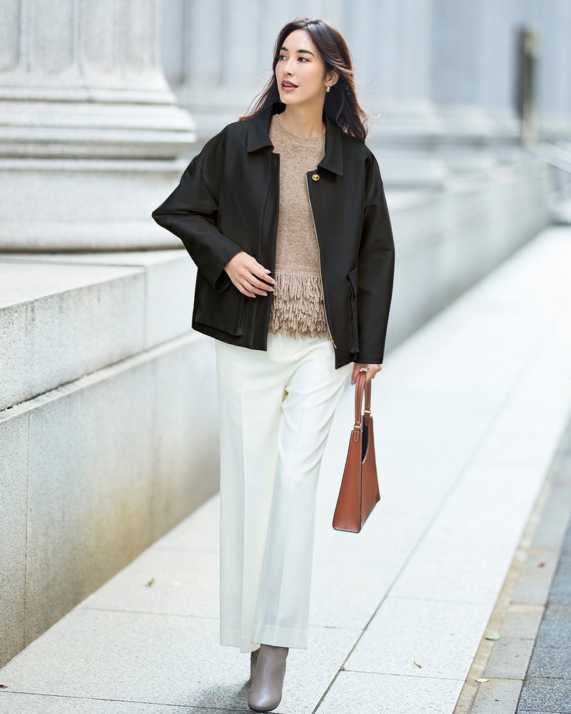 サテン仕立てのコンパクトジャケット