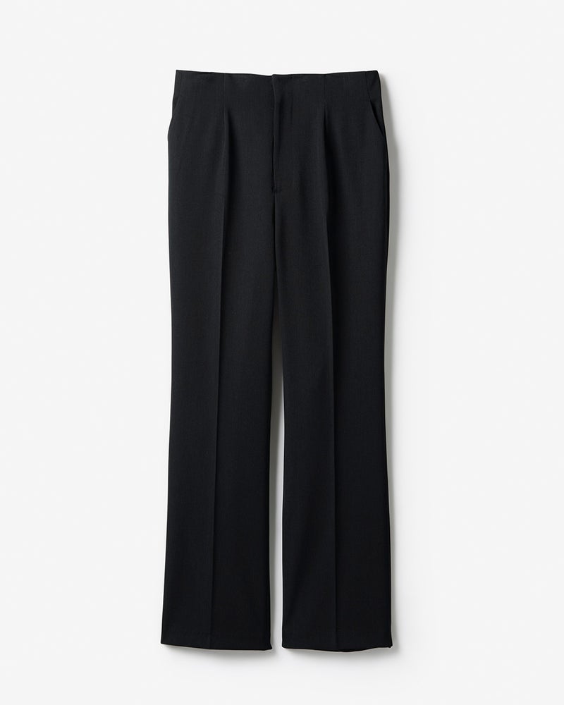 ストレッチ性がありながら身体のラインを拾わないウール混ダブルクロス素材。ジャケットなどにも用いられる上質素材を使って、お仕事にも公式の場にも似合う美脚ストレートパンツに仕立てました。ウエストからヒップまではほどよくフィット、膝上から裾まではすとんと落ちるストレートラインで脚長印象に。