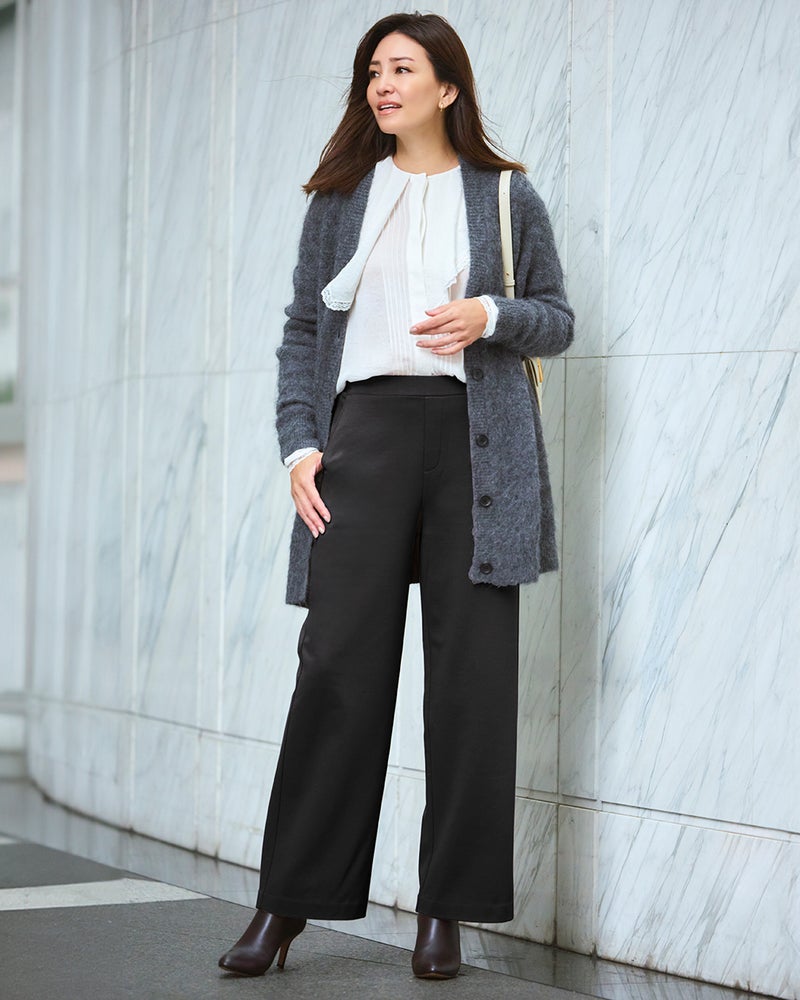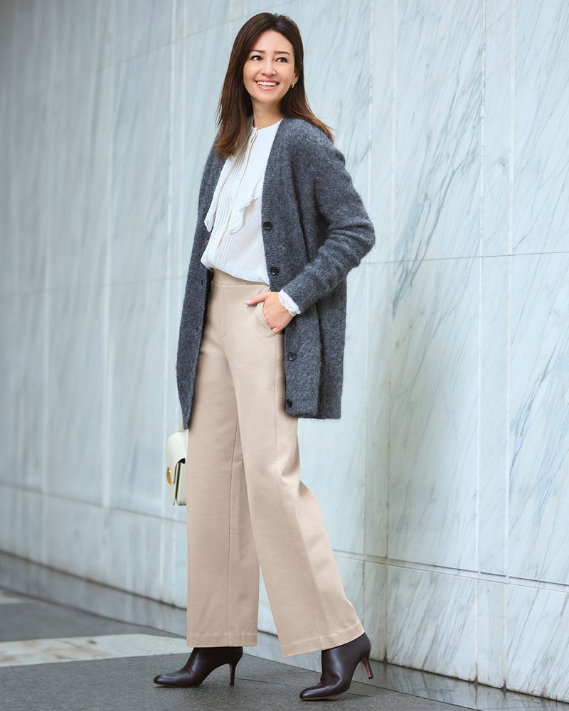 今シーズンは4つのシルエットをご用意。太すぎない筒幅のセミワイドは、トレンド感を取り入れながら、身長問わず着こなしやすいシルエットに仕上げています。ウエストは総ゴム仕様のラクチン設計ですが、ファスナー風のステッチ入りで綺麗にはけるデザインです。股下丈は3丈からお選びいただけます。