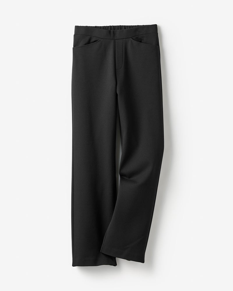 - オンオフに着回しやすい、膝下すらり見えストレート今シーズンは4つのシルエットをご用意。流行に左右されない定番ストレートは、膝下がすらっと見える美シルエットが自慢。ウエストは総ゴム仕様のラクチン設計ですが、ファスナー風のステッチ入りで綺麗にはけるデザインです。股下丈は3丈からお選びいただけます。