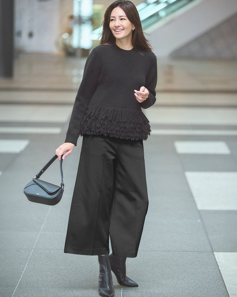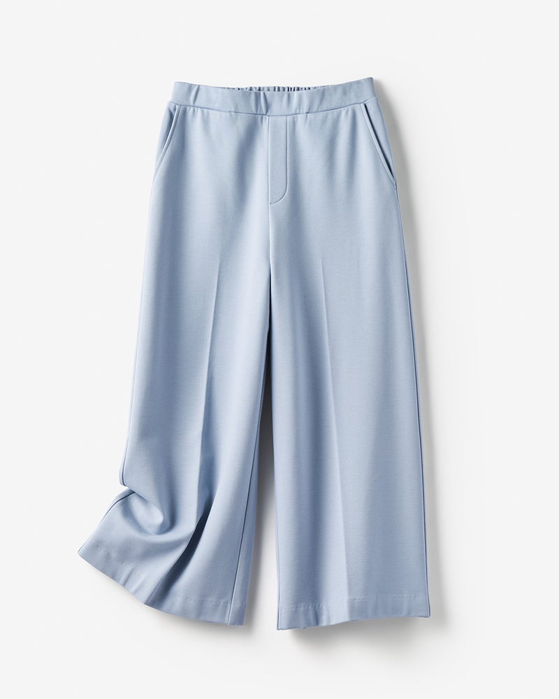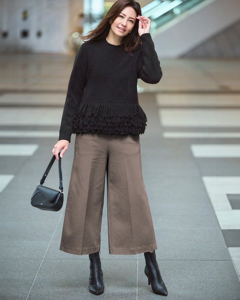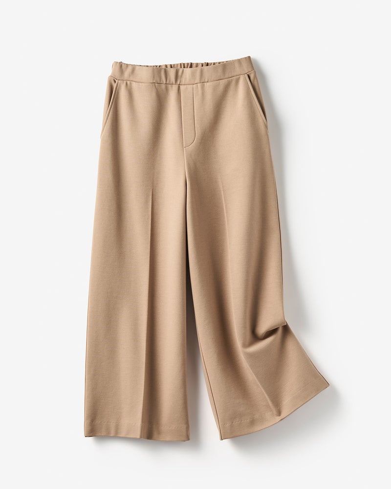 今シーズンは4つのシルエットをご用意。クロップド丈のワイドは、ブーツスタイルが似合う女性らしいシルエット。ウエストは総ゴム仕様のラクチン設計ですが、ファスナー風のステッチ入りで綺麗にはけるデザインです。