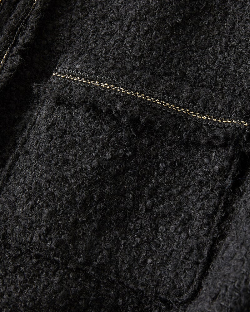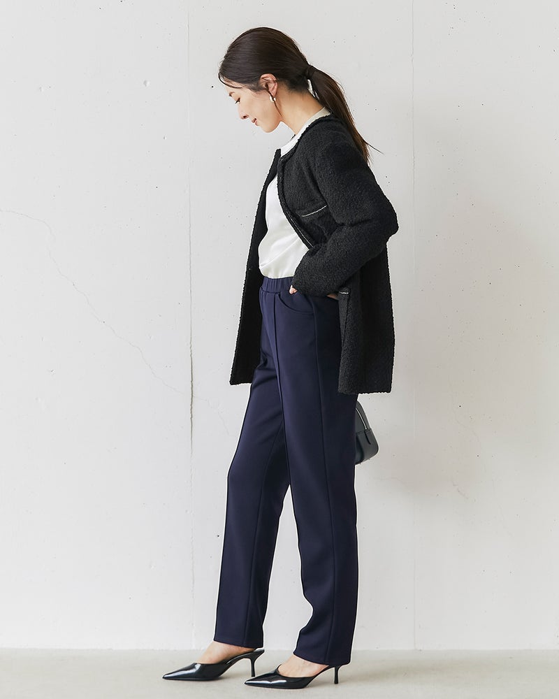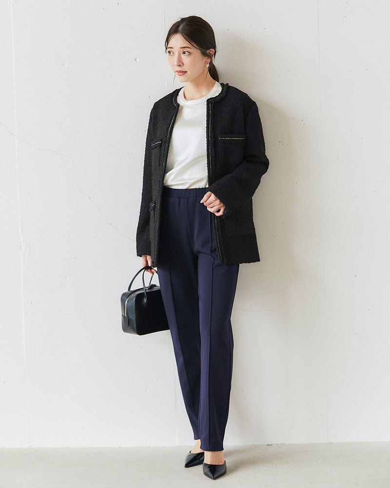 素材 | 表地/090ブラック:ポリエステル59%・毛32%・レーヨン3%・アクリル3%・ナイロン2%・綿1%、094ブラックパターン:ポリエステル71%・毛25%・レーヨン1%・ナイロン1%・アクリル1%・綿1%、裏地・テープ部分/ポリエステル100% |