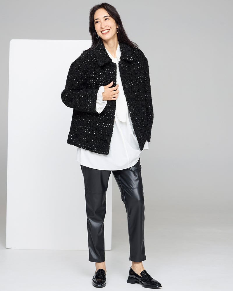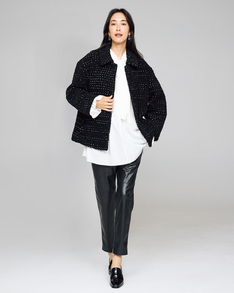 レザーパンツ=タイトシルエットという常識を覆す、ゆったりテーパードシルエットのモダンなエコレザーパンツ。リアルレザーのような見た目は保ちつつ、気負いなくはける総ゴム仕立て&柔らかな質感がポイント。イージーパンツの着心地でモードなレザーパンツのお洒落が楽しめる大人におすすめの1着です。