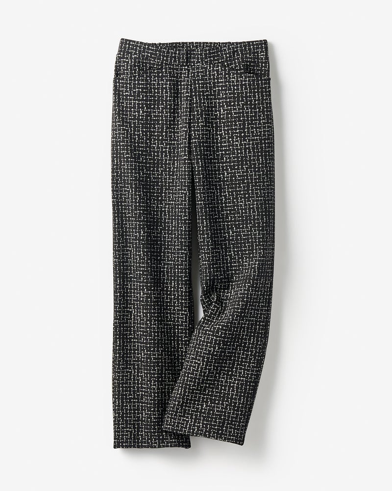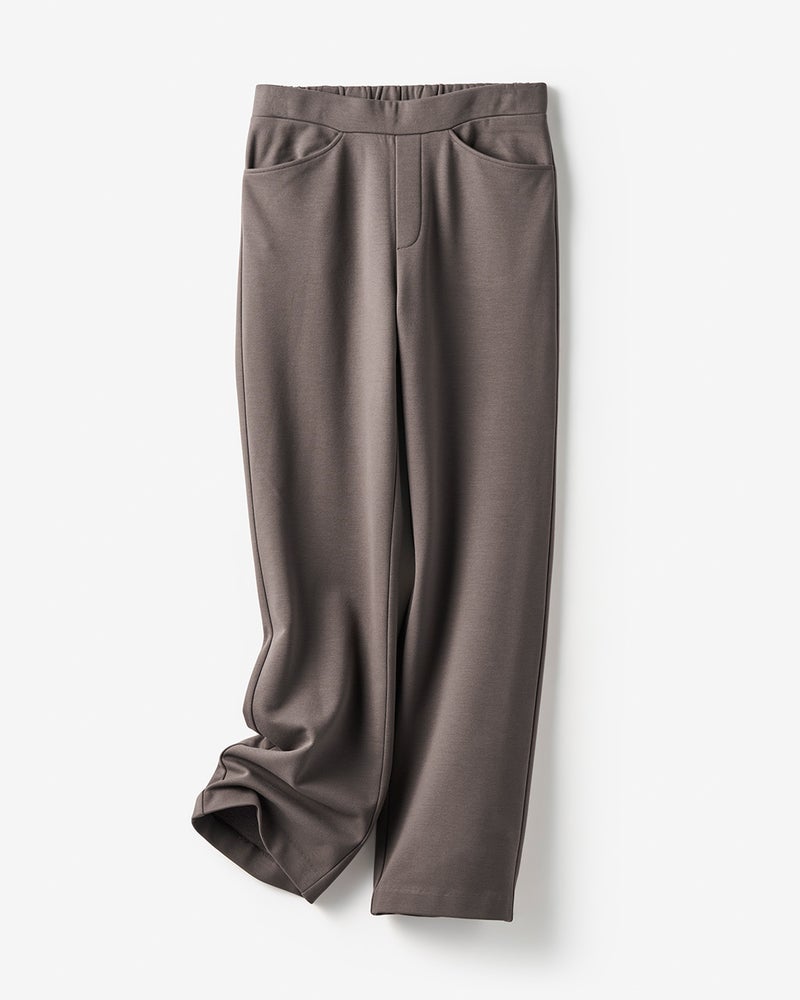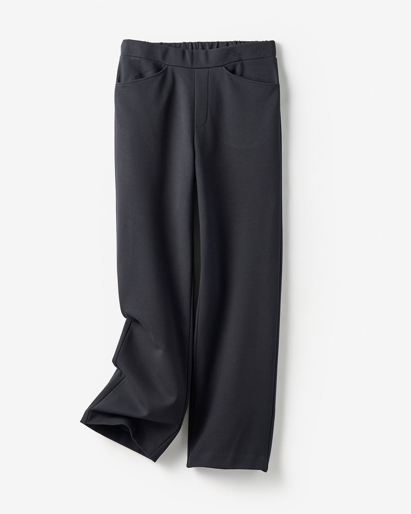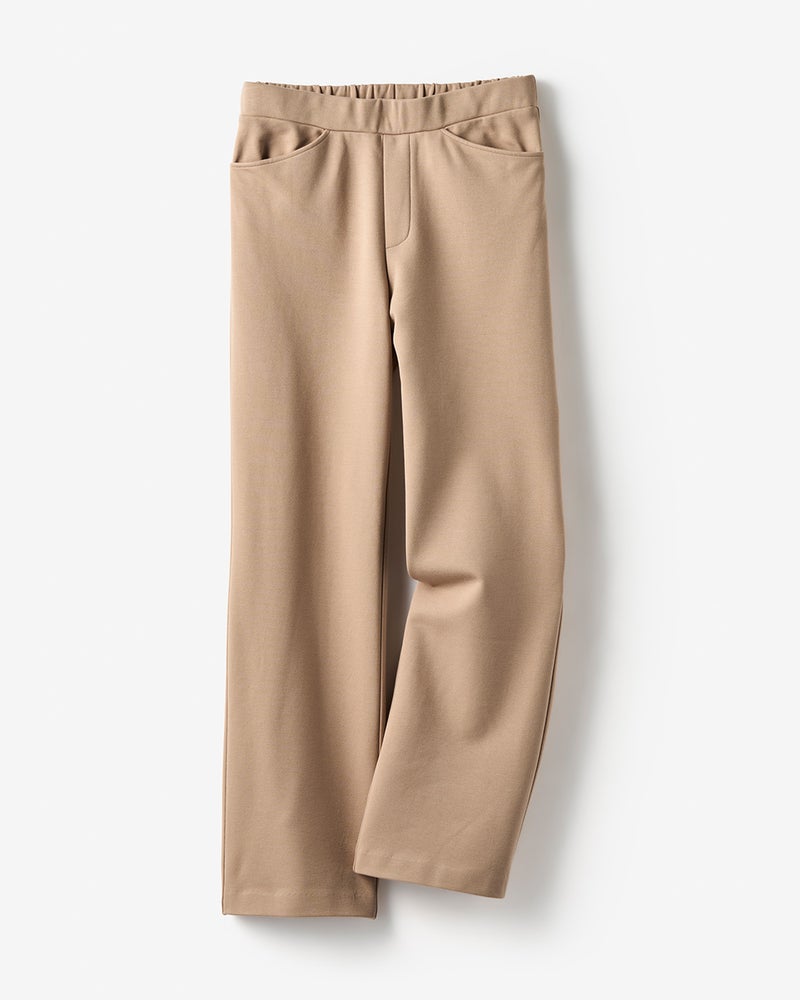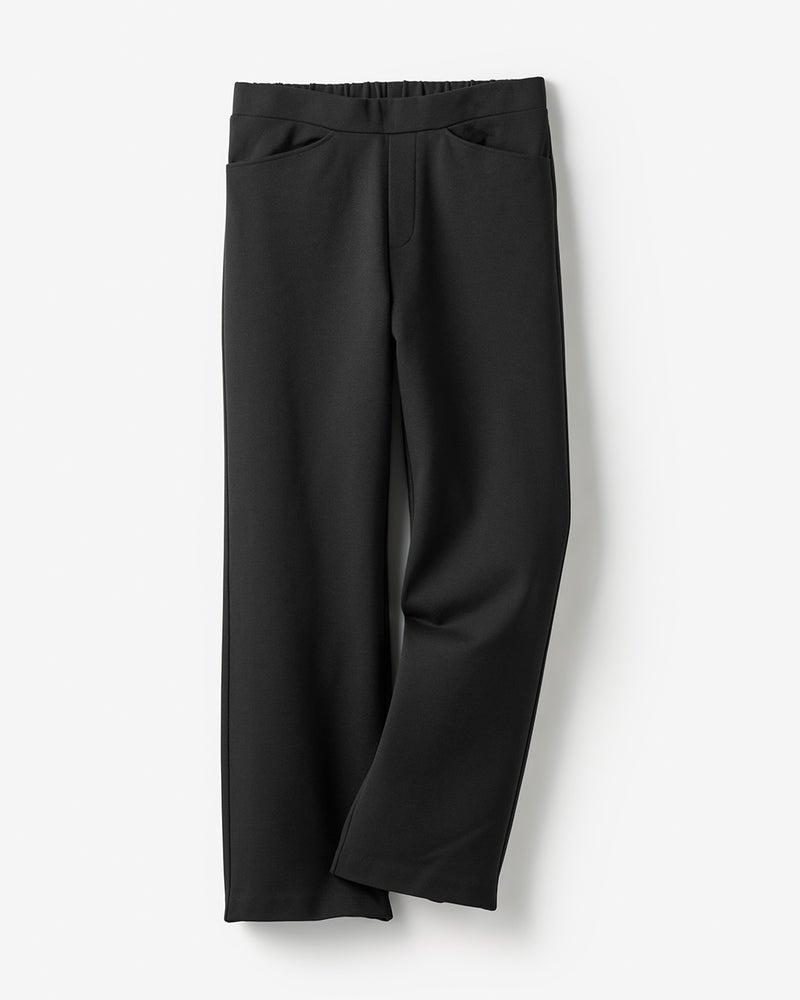 - オンオフに着回しやすい、膝下すらり見えストレート今シーズンは4つのシルエットをご用意。流行に左右されない定番ストレートは、膝下がすらっと見える美シルエットが自慢。ウエストは総ゴム仕様のラクチン設計ですが、ファスナー風のステッチ入りで綺麗にはけるデザインです。股下丈は3丈からお選びいただけます。