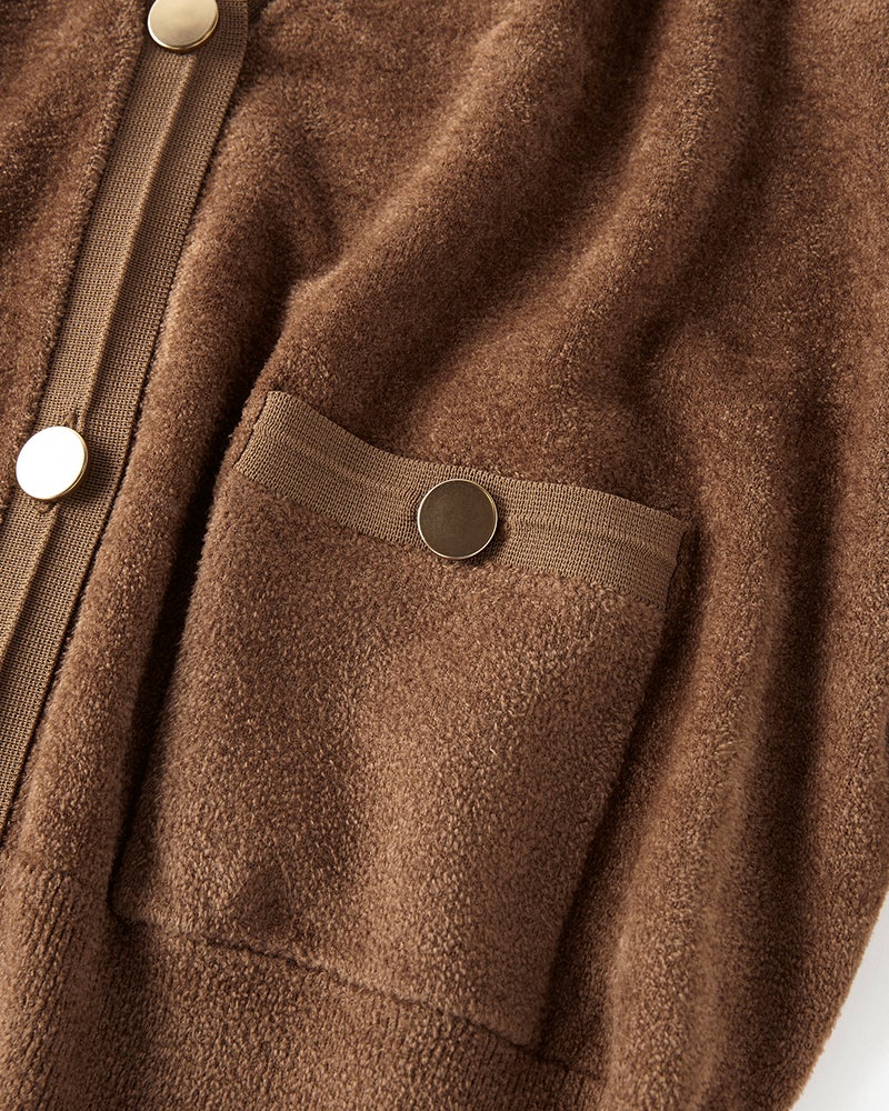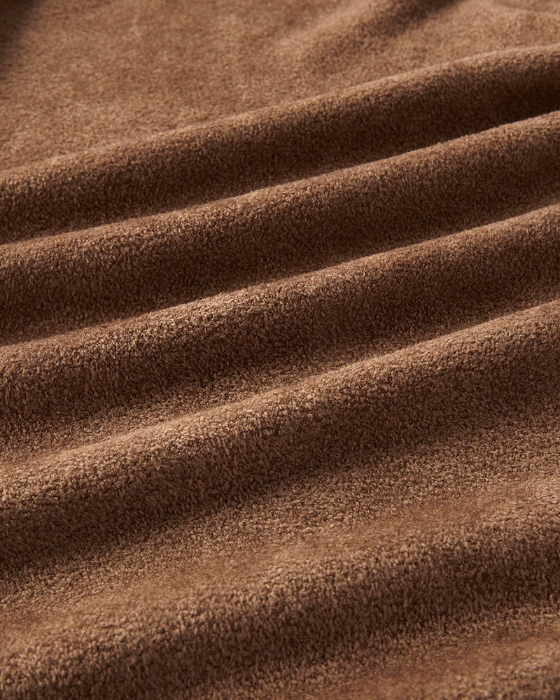 着回しやすいVネックカーディガンも、モールニットの光沢感で主役級の存在に。前立てとポケット口に異素材でメリハリをつけ、アクセントにメタル風ボタンをあしらいました。旬のショート丈でスタイルアップ効果も抜群。同素材のトップス(品番:32307 モールニット・ハイネックトップス)と合わせれば、ひときわお洒落なアンサンブルに。