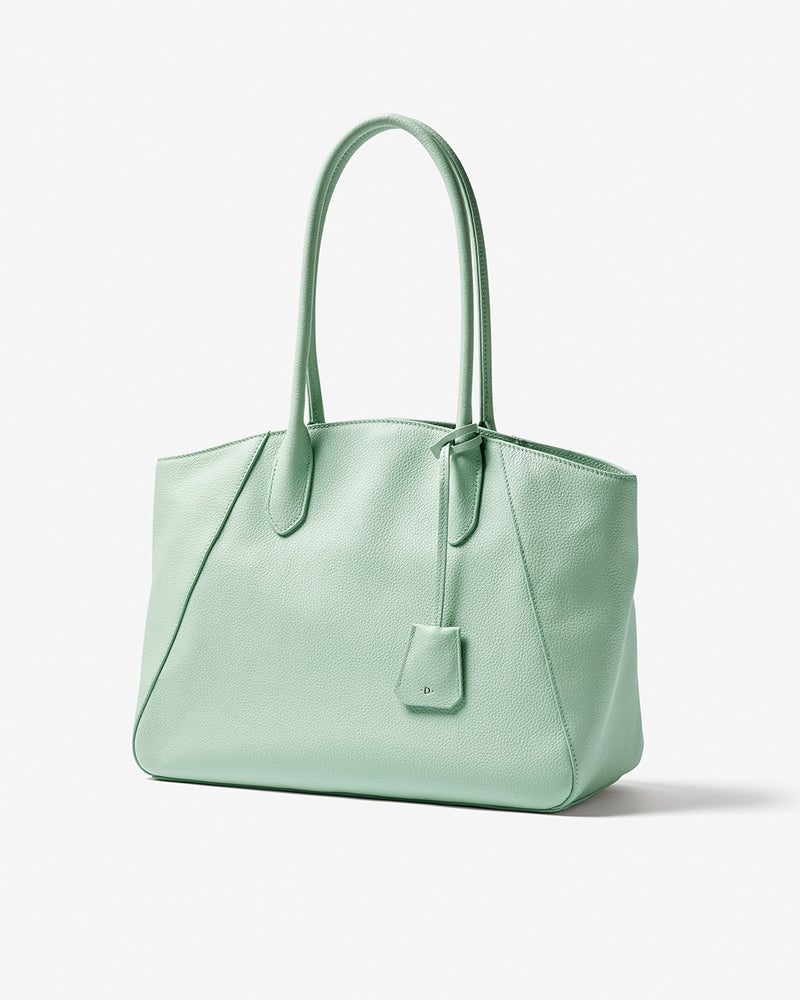 女性の体になじむフォルムで肩がけも楽々!ハンドルの形状や長さ、マチ幅まで、女性のボディラインに合わせて設定。開口部にはカーブをつけることで肩がけした時に体の一部のように収まる快適なフィット感を実現しました。