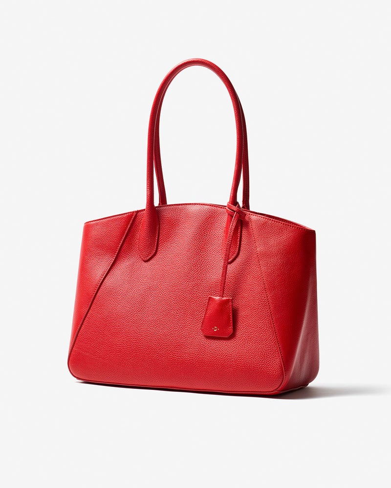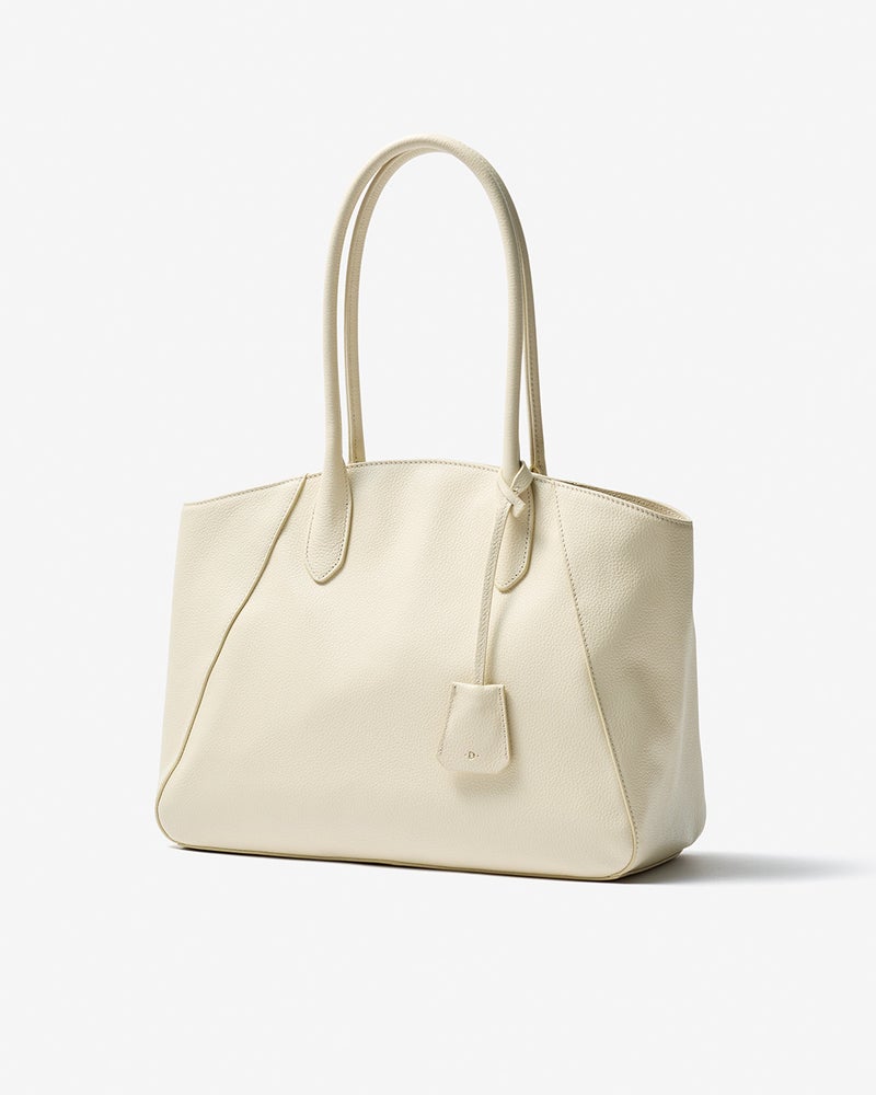 女性の体になじむフォルムで肩がけも楽々!ハンドルの形状や長さ、マチ幅まで、女性のボディラインに合わせて設定。開口部にはカーブをつけることで肩がけした時に体の一部のように収まる快適なフィット感を実現しました。