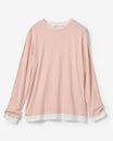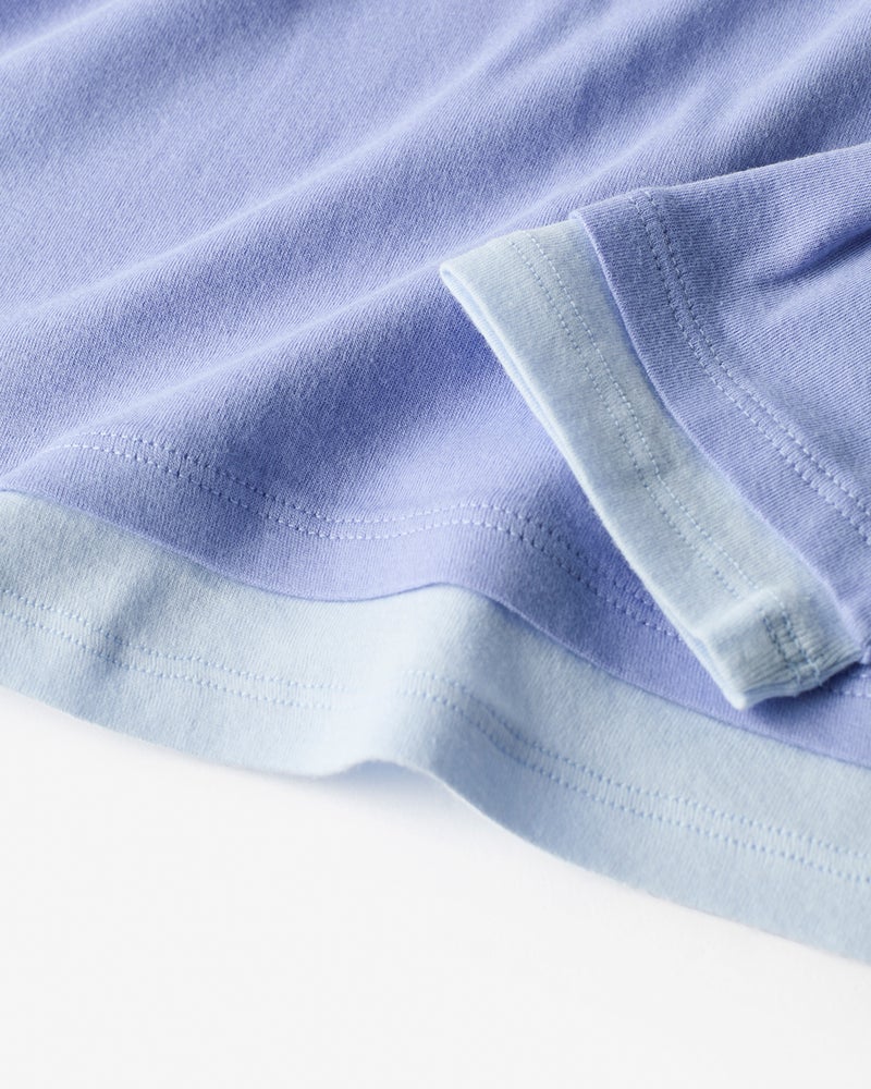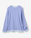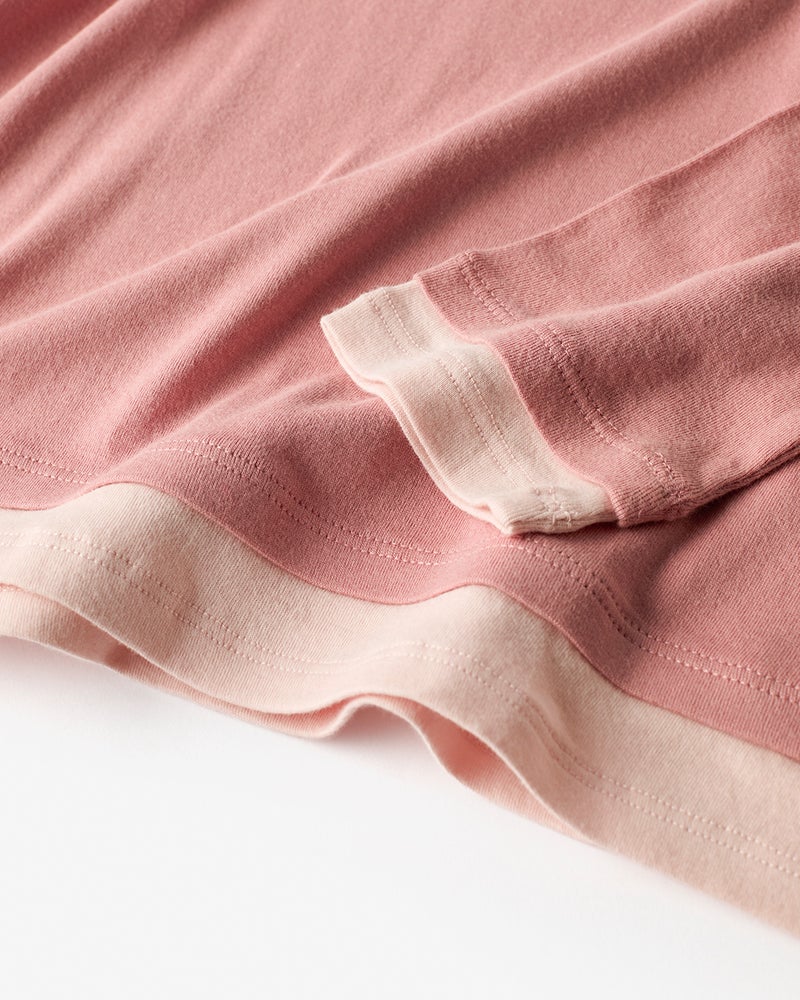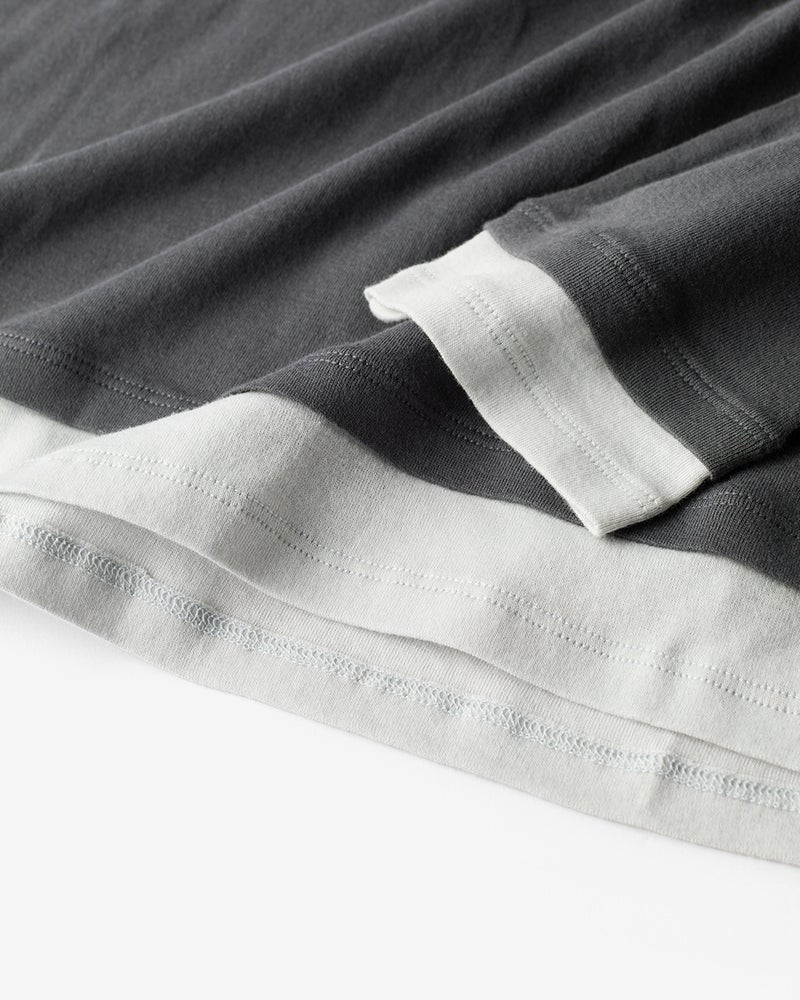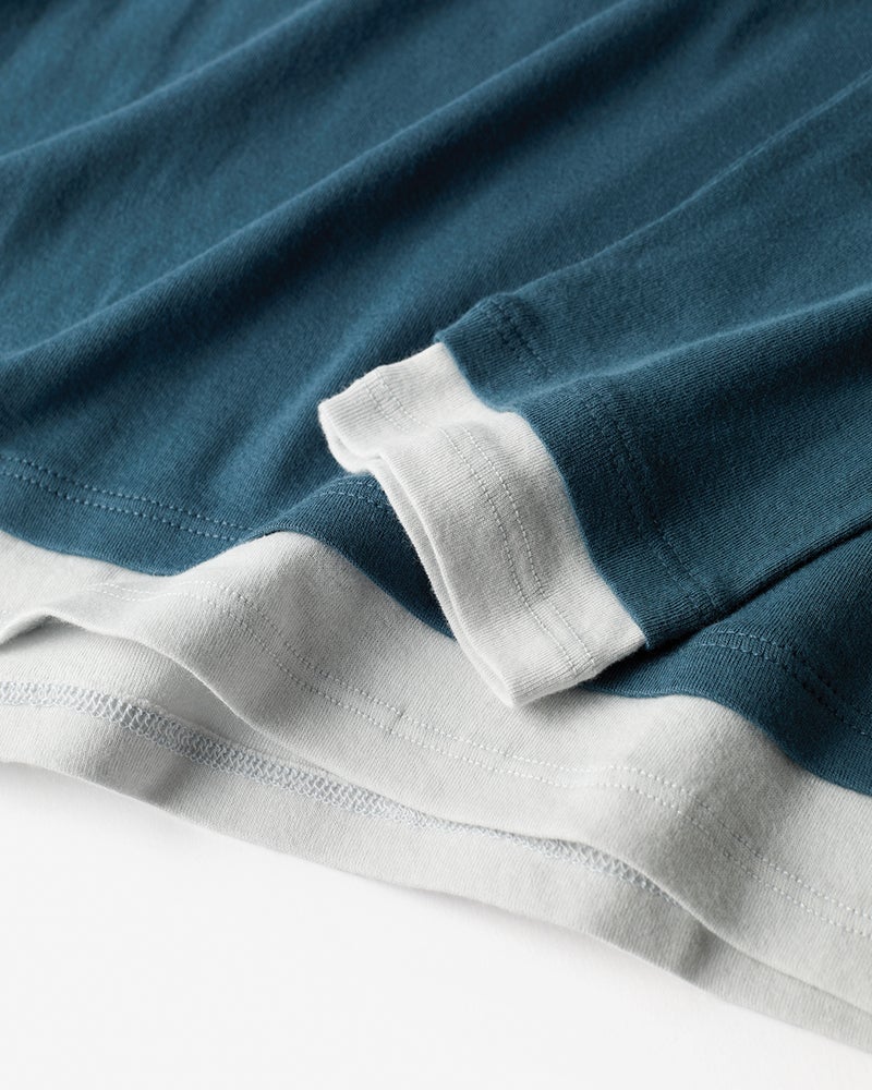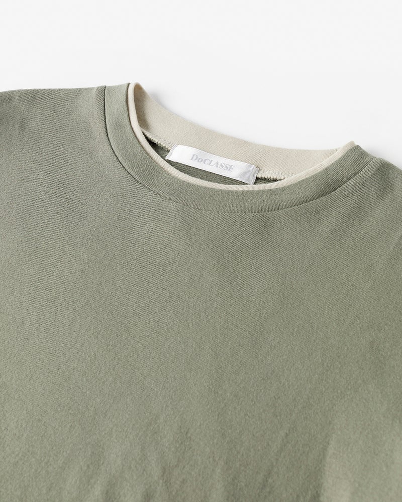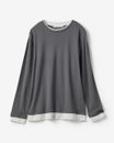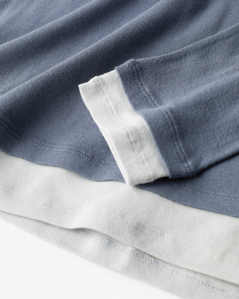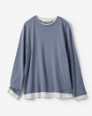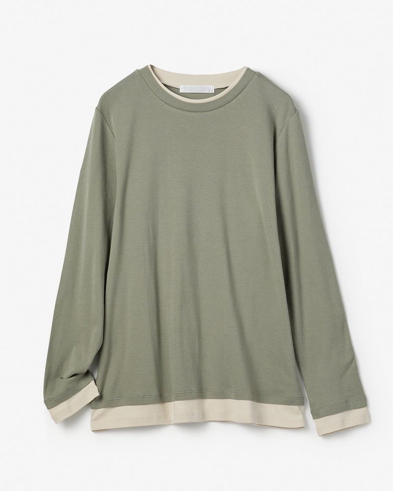 ネック、裾、袖口に異なる色の別生地を仕込んだレイヤード風デザイン。さらっと爽やかな着心地で、お洒落な重ね着スタイルを叶えます。
