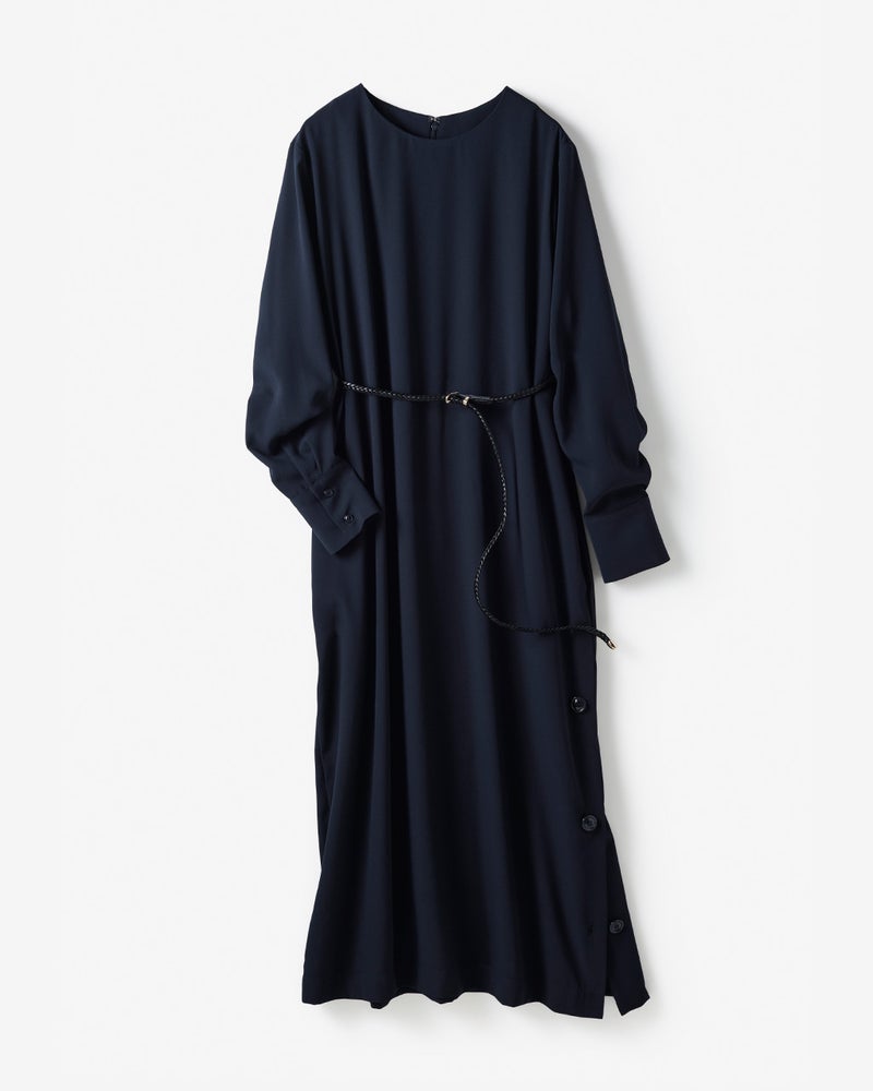 ジョーゼット・裾ボタンサックワンピベルト付