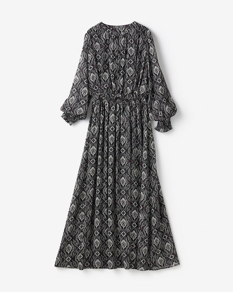 • プリントジャカード・ギャザーワンピース 詳細画像 ブラックパターン 2