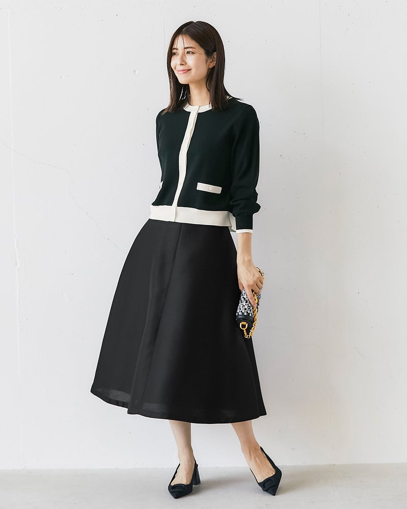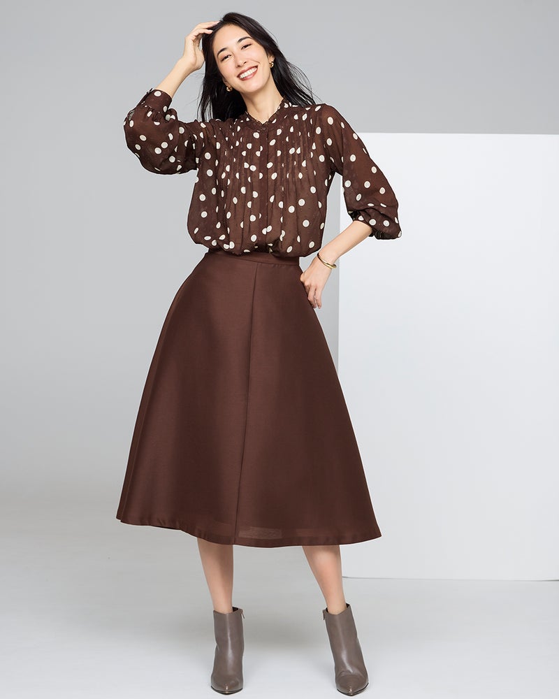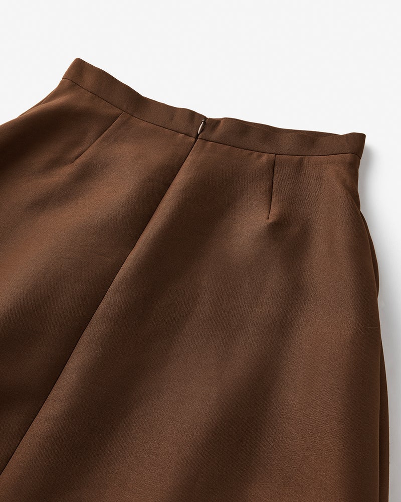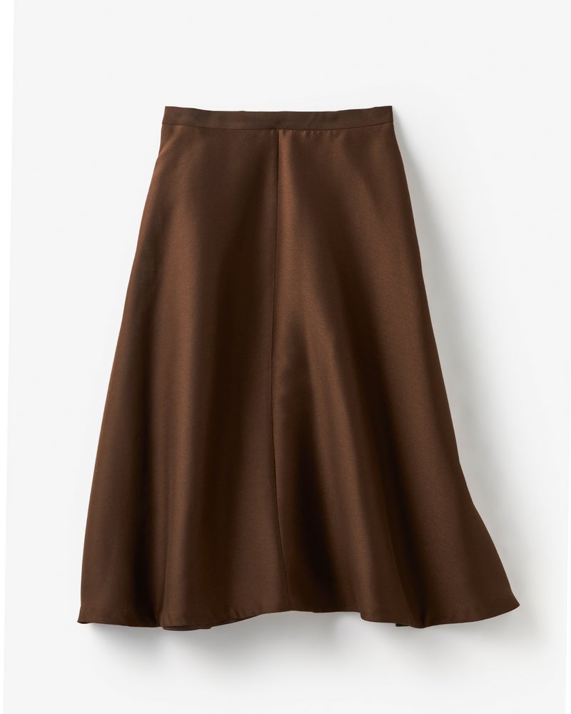 艶やかでふくらみのあるダブルクロス生地で仕立てたドレッシーなフレアスカート。縦にはぎをいれることで叶えたふわりと広がるフレアシルエットが、着こなしをドラマティックに。ハリがありながら薄手の質感は、秋冬だけでなく春までロングシーズン活躍します。