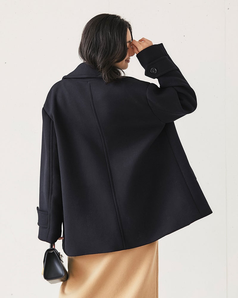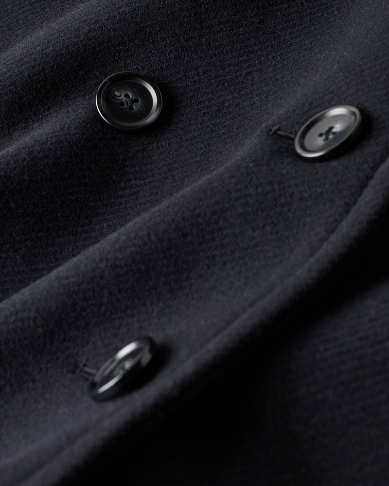 綾織りウール仕立てのモダンピーコート