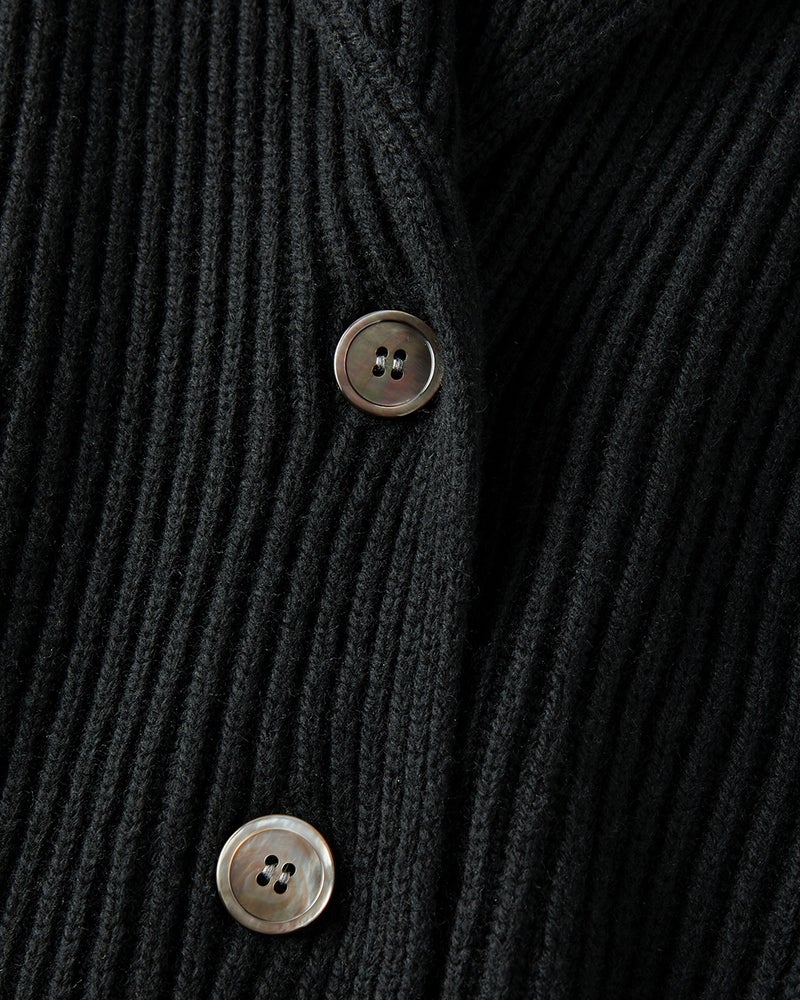 ボリューミーなショールカラーがポイントの片畦編みカーディガンは、ジャケットライクにも着こなせる大人にぴったりの1着。たっぷりしたシルエットですが、ウールと合繊を組み合わせたミックス糸を使っているから、見た目よりも軽い着心地。ボタンを閉めてジャケット風に、軽く羽織ってカーディガンとして、真冬はコートインに、などロングシーズン着まわせるのも魅力。