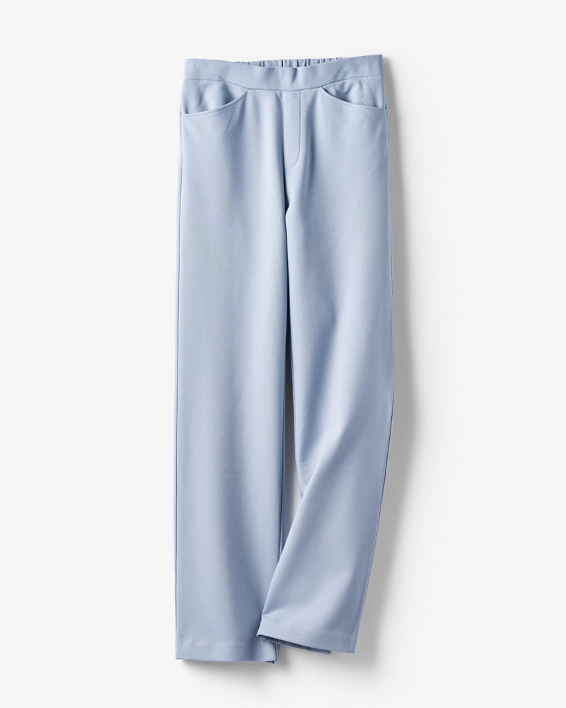 - オンオフに着回しやすい、膝下すらり見えストレート今シーズンは4つのシルエットをご用意。流行に左右されない定番ストレートは、膝下がすらっと見える美シルエットが自慢。ウエストは総ゴム仕様のラクチン設計ですが、ファスナー風のステッチ入りで綺麗にはけるデザインです。股下丈は3丈からお選びいただけます。