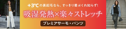 - 「裏起毛パンツに見えないきれいな素材感」「下にタイツをはかなくても1枚で暖かい」と、寒がりさんに絶大な人気を誇る、あったか裏起毛パンツ『プレミアサーモ』シリーズ。