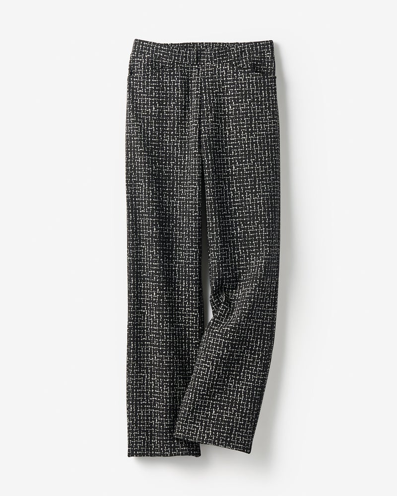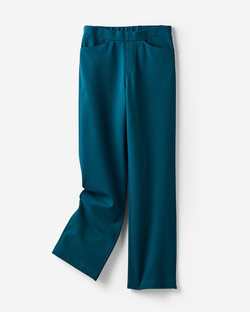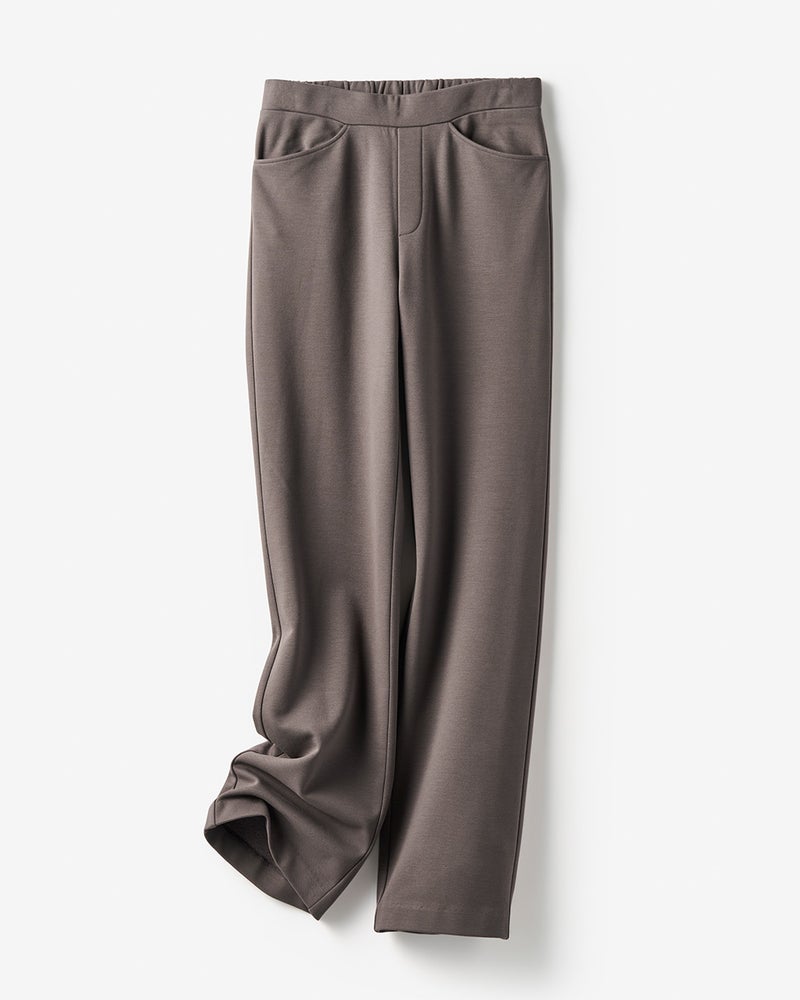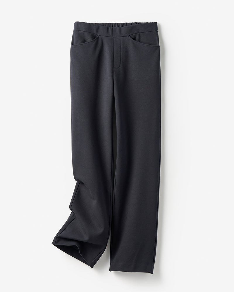 今シーズンは4つのシルエットをご用意。流行に左右されない定番ストレートは、膝下がすらっと見える美シルエットが自慢。ウエストは総ゴム仕様のラクチン設計ですが、ファスナー風のステッチ入りで綺麗にはけるデザインです。股下丈は3丈からお選びいただけます。