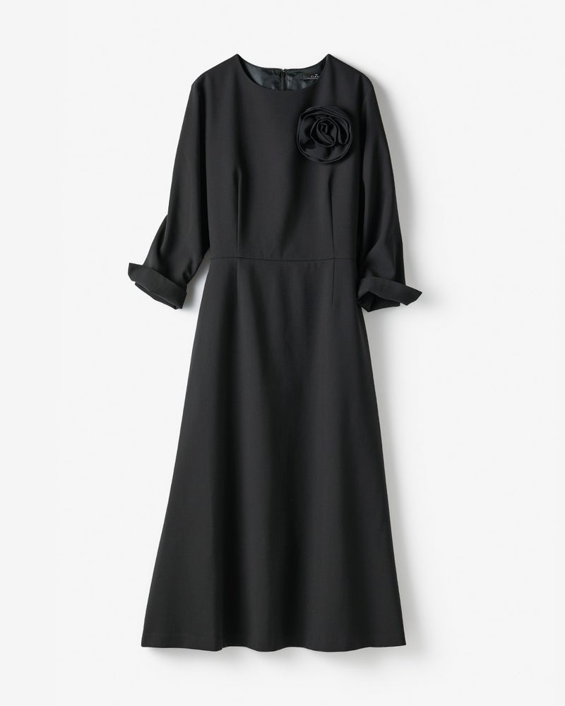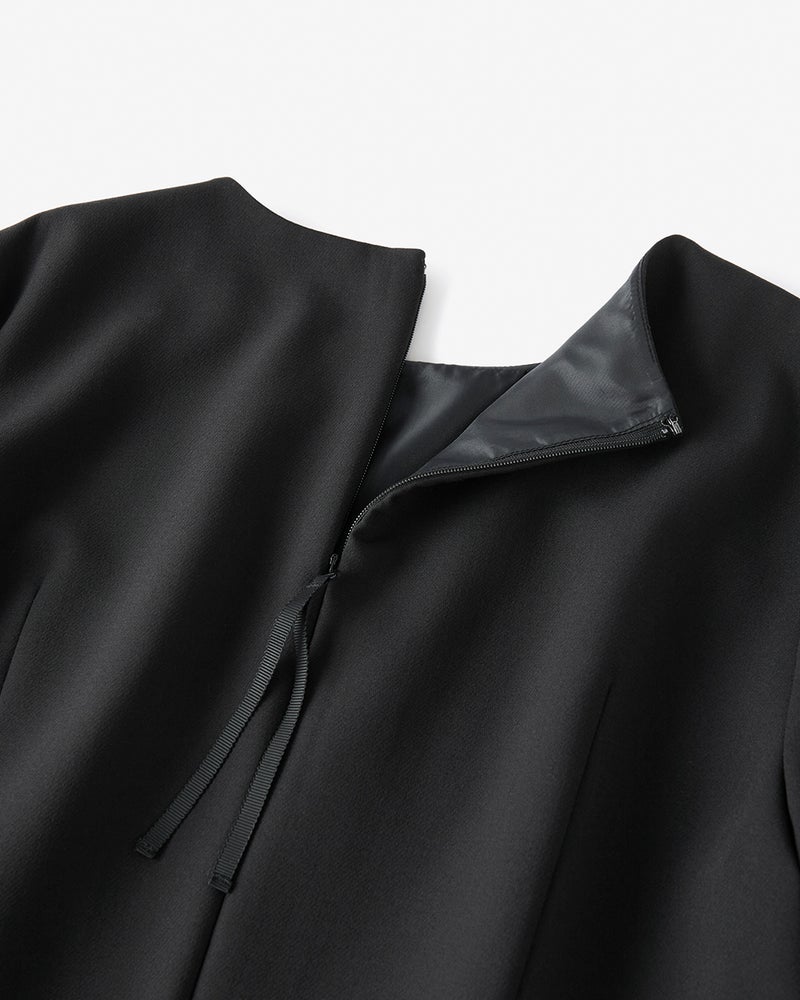 控えめなクルーネック、ウエスト切り替えの上品なフレアシルエットで仕立てたワンピースはセレモニーにもぴったり。ほどよい厚みとしなやかさを両立した二重織り素材は、身体の線を美しく見せてくれます。