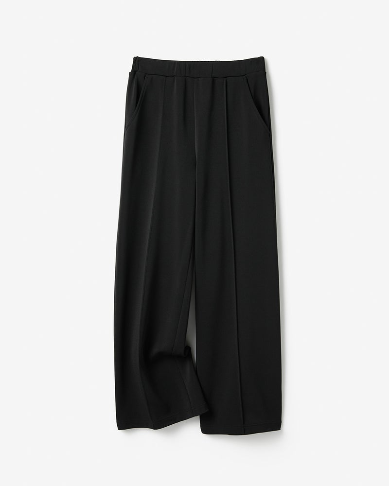 スマートなウエストライン長時間着用してもストレスフリーな、ぐんとラク伸びするウエスト総ゴム仕立て。前ウエストは平ゴム仕立てで、すっきりした見た目をキープ。