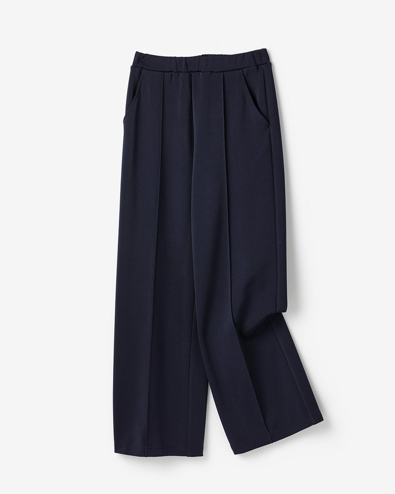 すらりとした美脚をアピールするセンターラインは、つまんで縫い付けたピンタック仕立て。洗濯しても消えない美脚ラインが、いつでもスタイルアップを応援。