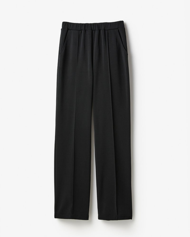脚を細く、長くすらりとした美脚をアピールするセンターラインは、つまんで縫い付けたピンタック仕立て。洗濯しても消えない美脚ラインが、いつでもスタイルアップを応援。