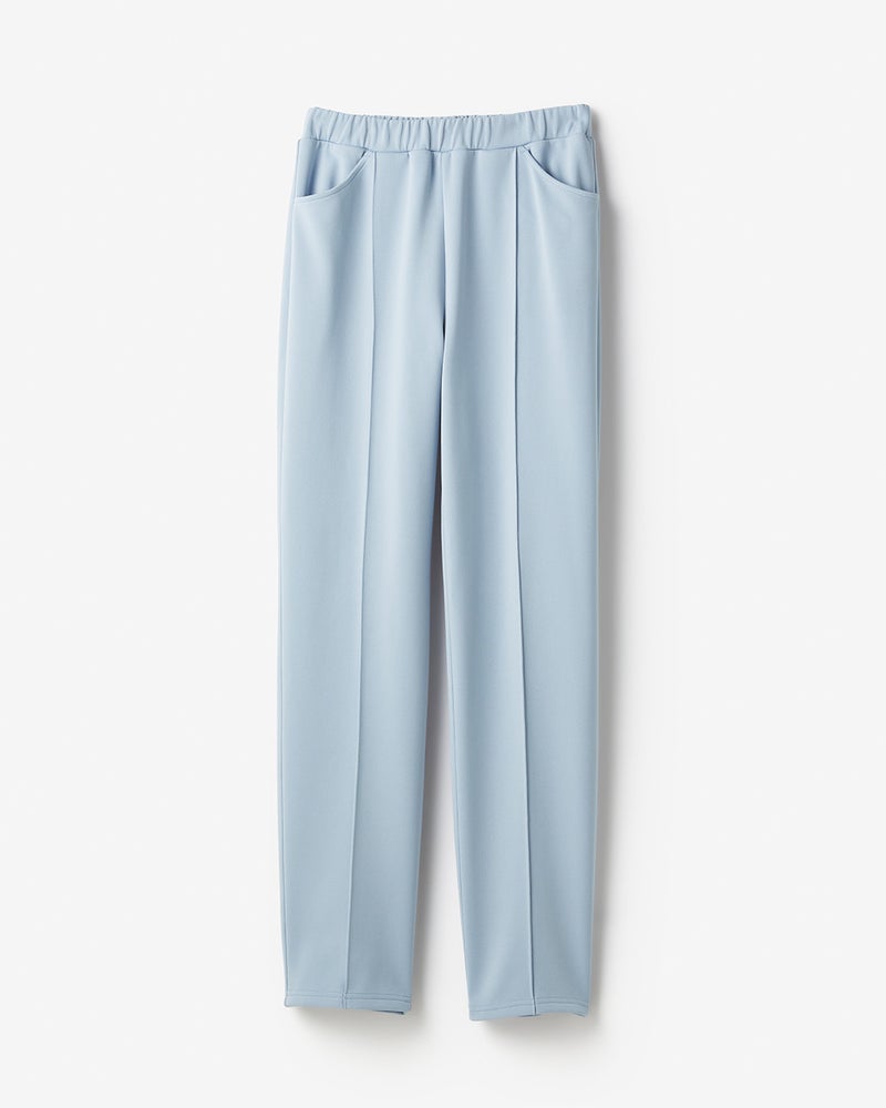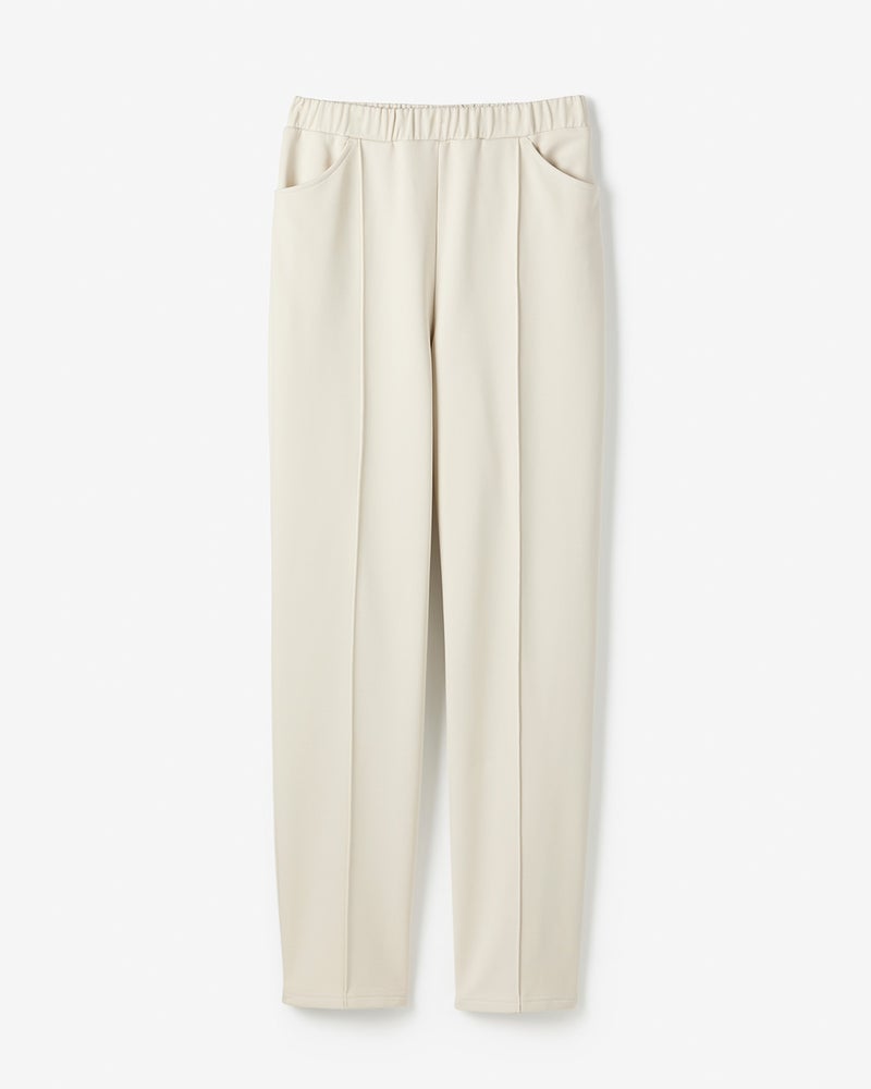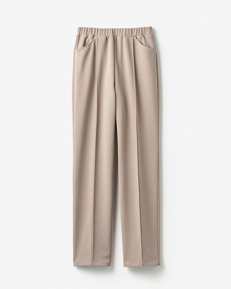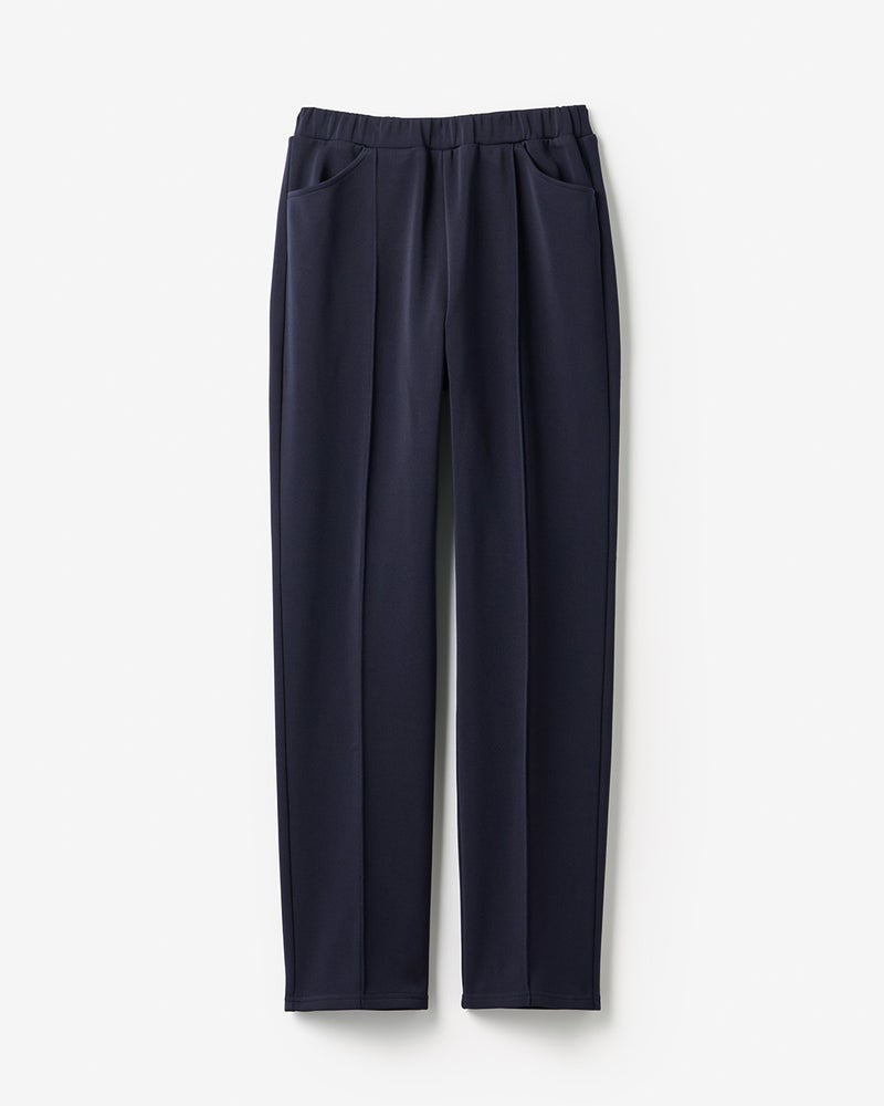 脚を細く、長くすらりとした美脚をアピールするセンターラインは、つまんで縫い付けたピンタック仕立て。洗濯しても消えない美脚ラインが、いつでもスタイルアップを応援。
