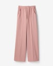 長時間着用してもストレスフリーな、ぐんとラク伸びするウエスト総ゴム仕立て。前ウエストは平ゴム仕立てで、すっきりした見た目をキープ。