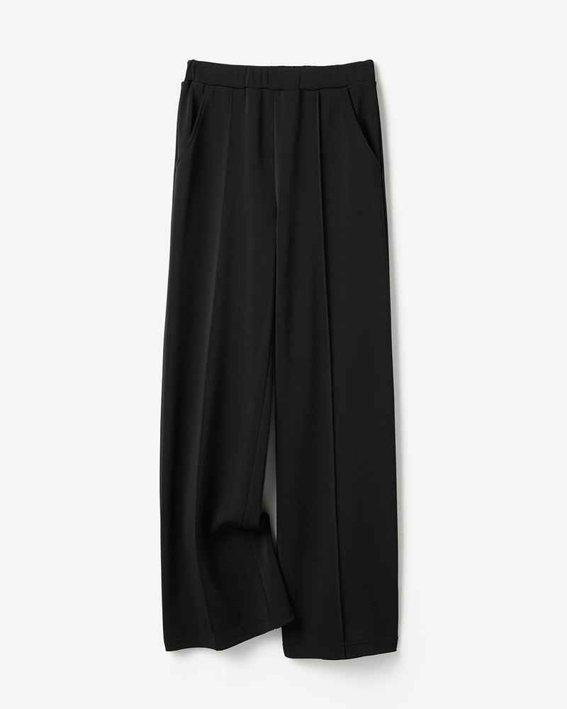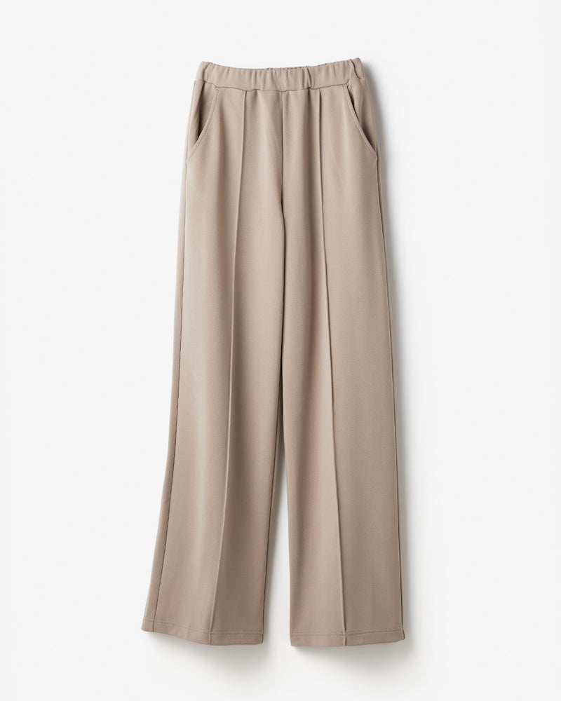 脚を細く、長くすらりとした美脚をアピールするセンターラインは、つまんで縫い付けたピンタック仕立て。洗濯しても消えない美脚ラインが、いつでもスタイルアップを応援。