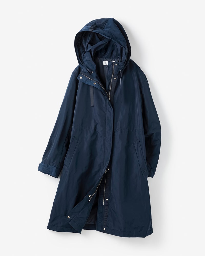 - 広がらず膨らまずシュッとして見えて素敵です。思ったより重くて硬めの生地でしたが、しっかりしていて気に入りました。フードを留めるテープはスナップボタンで垂れ下がらなくできますよ!