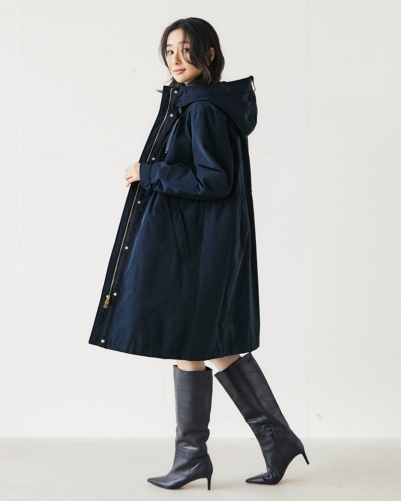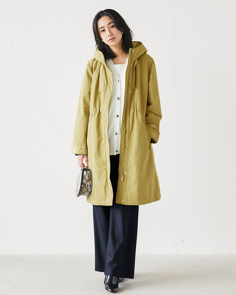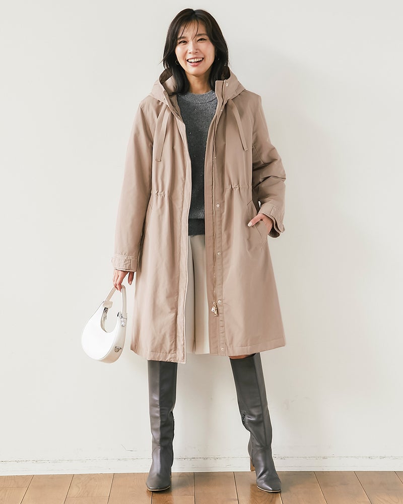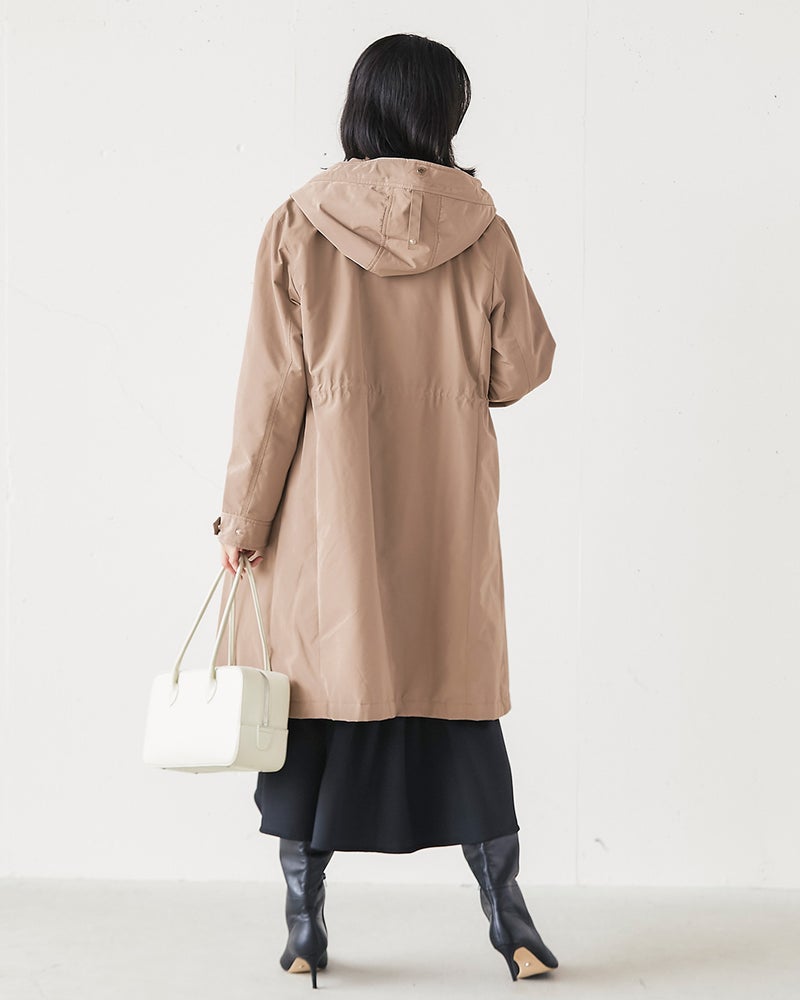 ※コート内にウエストをキュッと締めることのできるゴムが付いていて体型にメリハリが出せる。