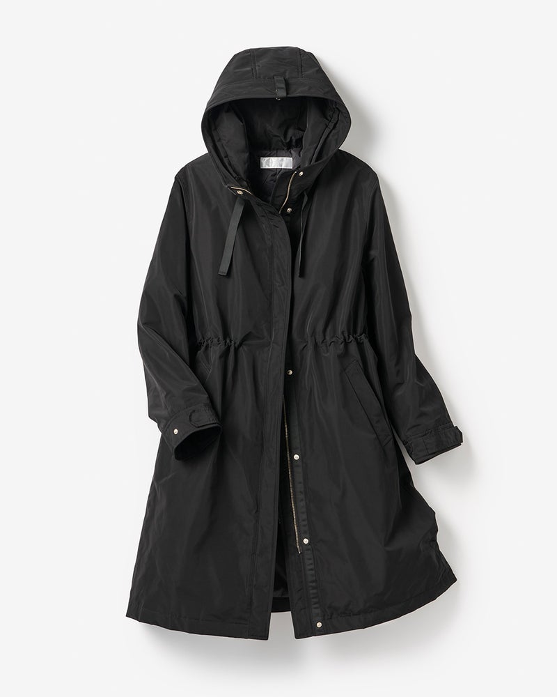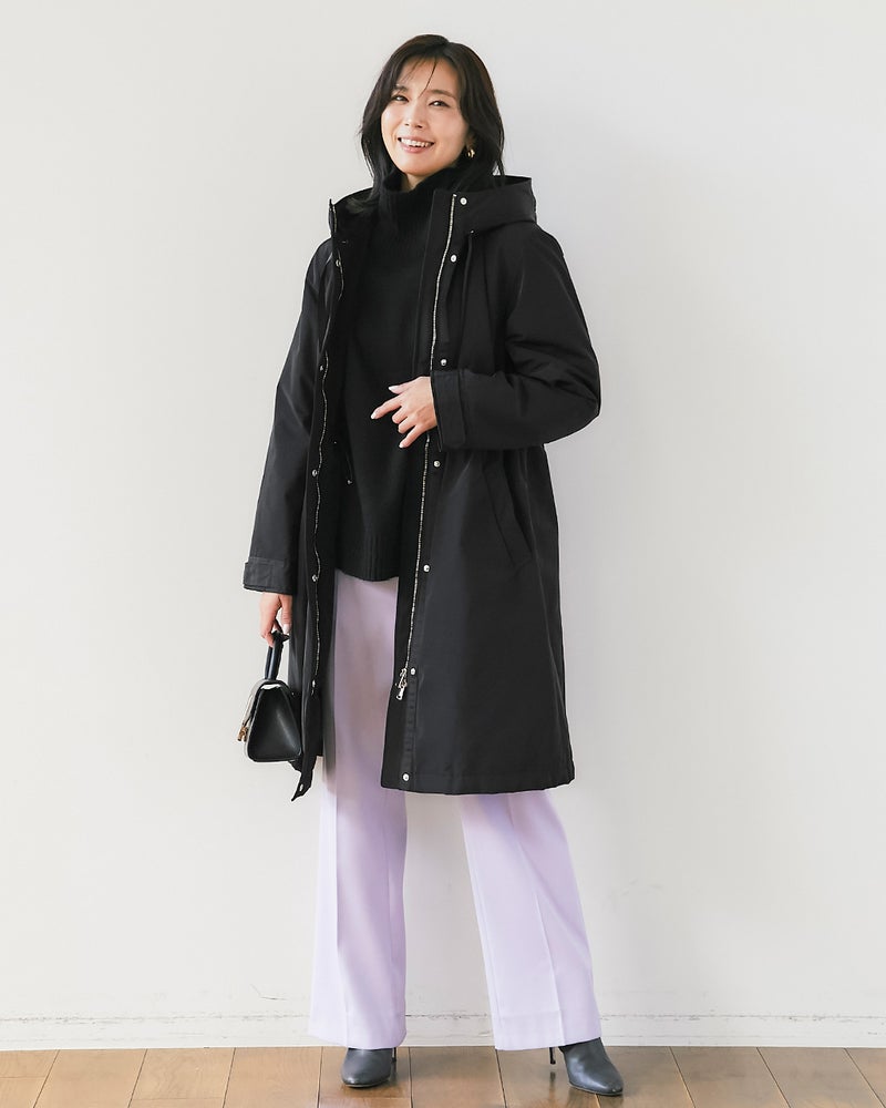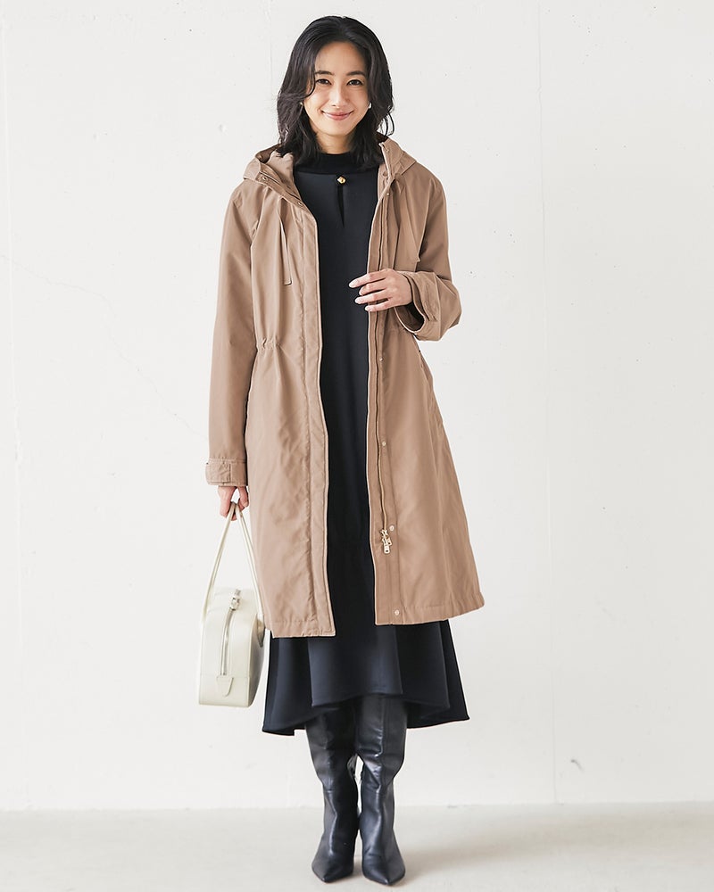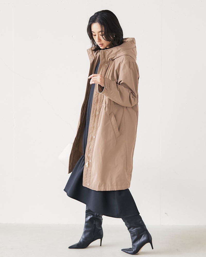 ※コート内にウエストをキュッと締めることのできるゴムが付いていて体型にメリハリが出せる。