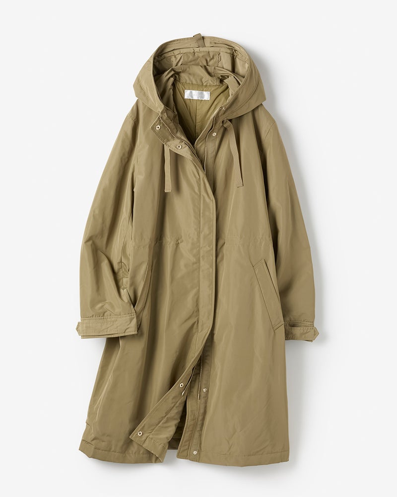 - 確かな暖かさと着膨れしないシルエットで大人気の「マジカルサーモ」。大人カジュアルなモッズコート風デザインを、艶が美しいグログラン素材で仕立てた大人のためのカジュアルコートに仕上げました。顔まわりに立体感をもたらすフードは小顔効果も抜群!スナップボタンやファスナーなどのディテールまでリッチに仕上げています。