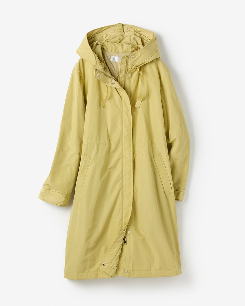 - 広がらず膨らまずシュッとして見えて素敵です。思ったより重くて硬めの生地でしたが、しっかりしていて気に入りました。フードを留めるテープはスナップボタンで垂れ下がらなくできますよ!