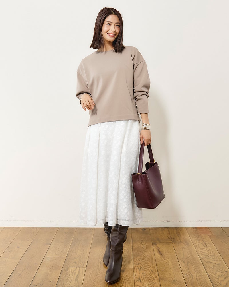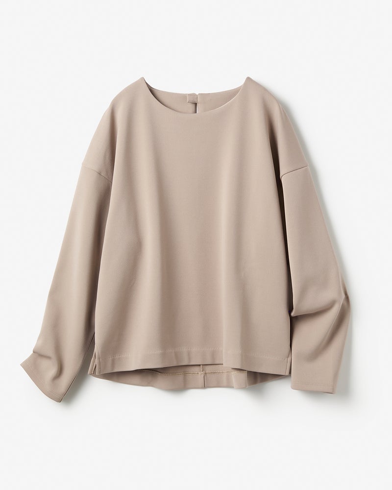 ゆったりしたシルエットのシンプルクルーネックは、パンツにもスカートにも合わせやすい着回し抜群のデザイン。サイドにプチスリットを入れた前後差デザインで、メリハリスタイルを叶えます。