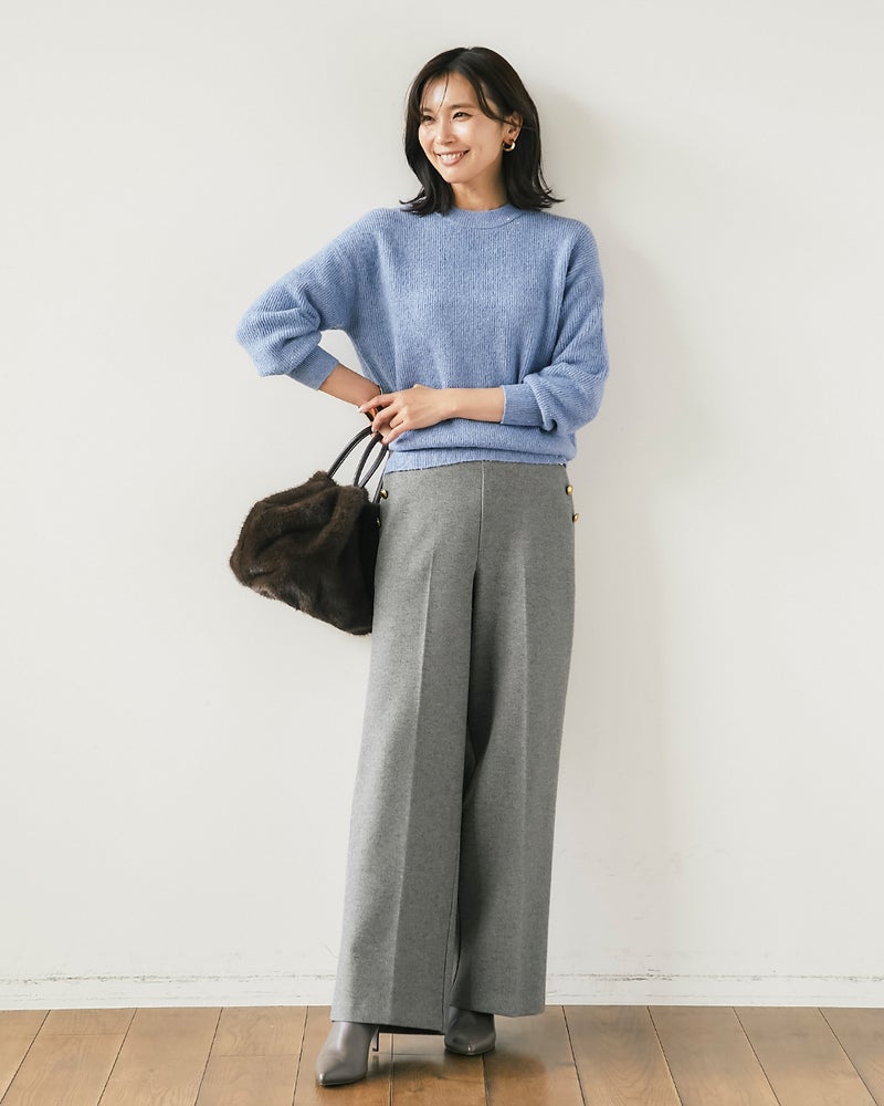 - ウールのように上品な起毛カットソーを使用見た目は上品ウールそのもの。でも、柔らかなカットソー素材だから、肌あたりは刺激ゼロ。心地良い伸縮性があって、自宅でお洗濯だってできてしまう、忙しい大人に嬉しい優秀素材です。