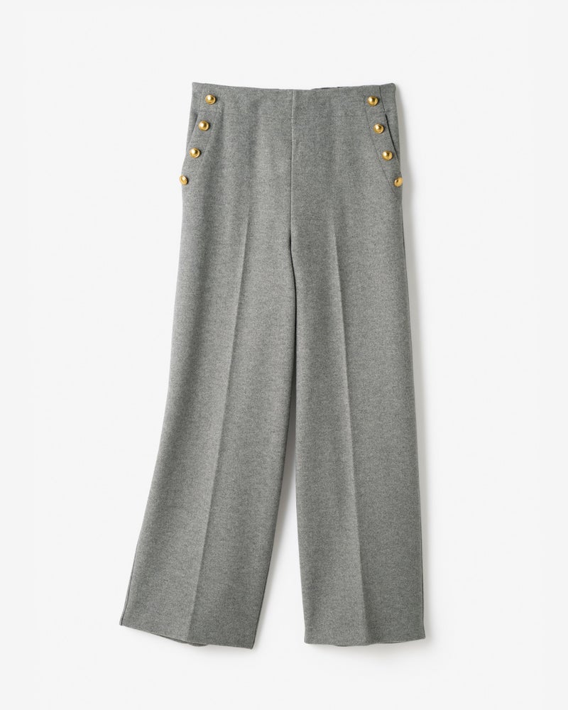- 164センチ48キロ、7号サイズ購入。まだまだ腰回やウェストにゆとりがある感じですが、許容範囲のゆとり。セーターをINすればいいかなと。丈感、生地感、大変気に入りました。私の身長でちょうどくるぶしの真ん中で、ヒールのない靴でもヒールのある靴でもいける丈でした。今時のシルエットのワイドパンツですね!このお値段とは思えない高級感のある温かい生地でした。ストーンはちょっと薄茶のような要素も入ったお色味で上品でした。この冬ヘビロテしそうです。