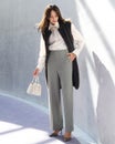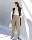 シルエットはオンオフに着回せる、全4種類をラインアップ。セミワイドは、腰まわりにメタルボタンでアクセントをつけたマリン風デザイン。サイドファスナーを備え、着脱も楽々です。股下は68cmと72cm(32491)の2丈からお選びいただけます。