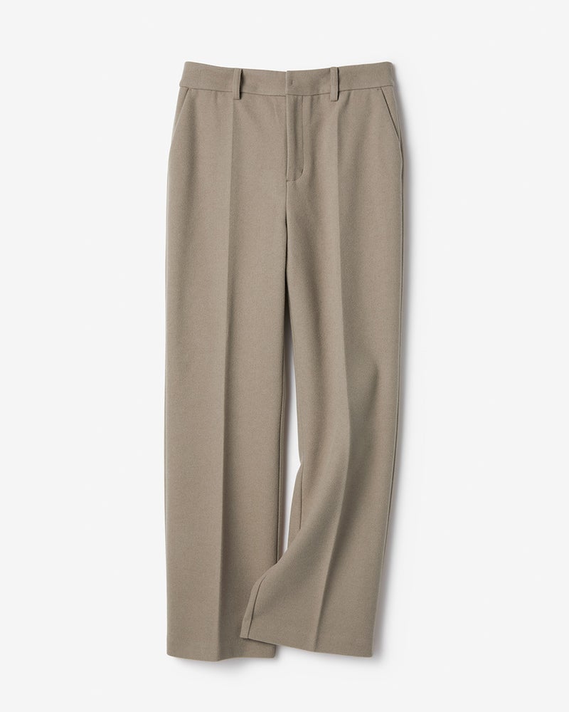 シルエットはオンオフに着回せる、全4種類をラインアップ。ストレートパンツは、膝を少し高めの位置に設定することで、膝下がすらりと伸びた美脚ラインを演出。センタープレスやベルトループを備えたきちんとデザインに仕上げました。