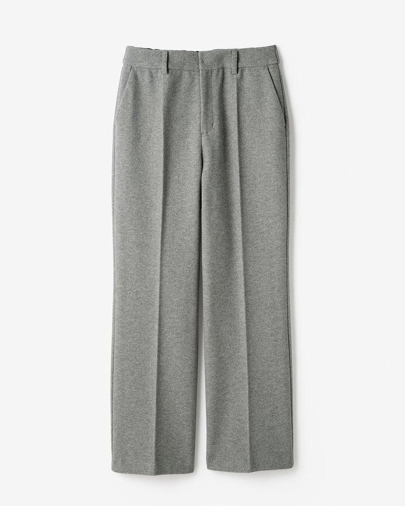 シルエットはオンオフに着回せる、全4種類をラインアップ。ストレートパンツは、膝を少し高めの位置に設定することで、膝下がすらりと伸びた美脚ラインを演出。センタープレスやベルトループを備えたきちんとデザインに仕上げました。