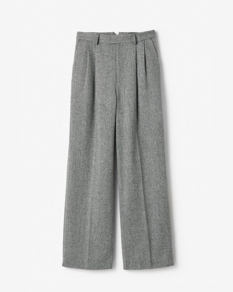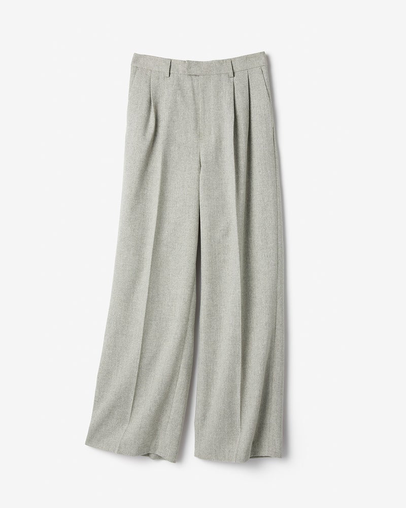 クラシカルなツイードに、さりげなく煌めくラメをちりばめた素材、「ラメツイード」のワイドパンツ。ツイードのマニッシュな表情をひき立てる、ほどよくワイドなシルエット。センタープレス入りで、きちんと感がほしいシーンでも活躍します。ウエストにはタックを入れ、お腹まわりが気にならないデザイン。