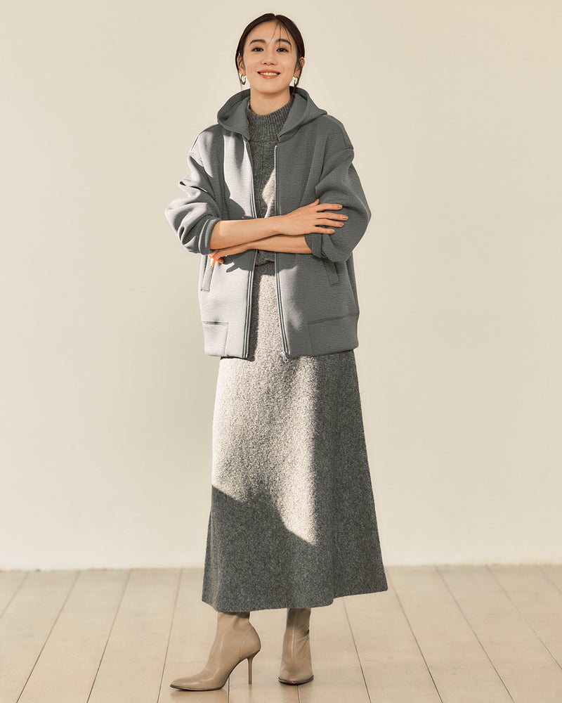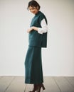 - ベストはなめらかな天竺、スカートはボディラインを拾わない総針編みで仕立てた、美フォルム自慢のニットセットアップ。ベストとスカートの編地を変えたひと技で、セットで着ても洒落感たっぷり、いまどき感と女っぽさがあふれる着こなしに。単品ずつでも多彩な着回しが楽しめます。
