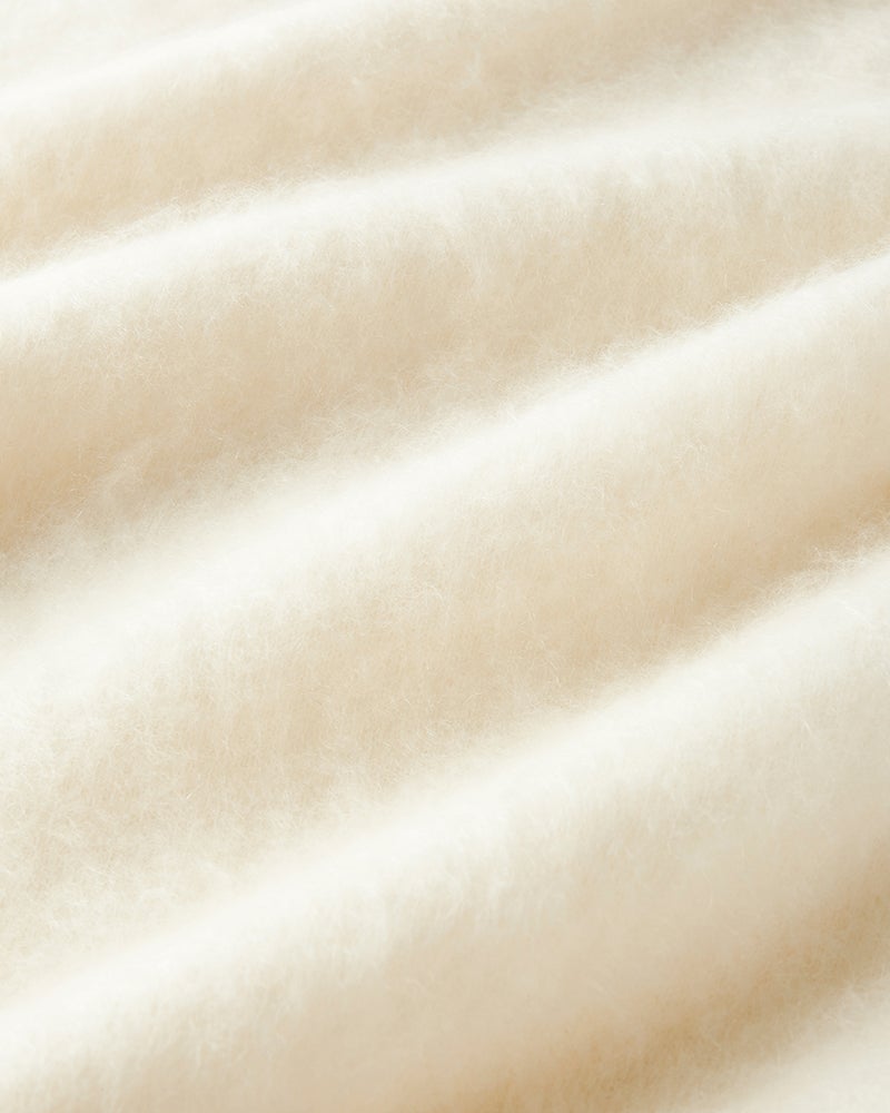 「呼吸する繊維」の着心地14~18.5μという極細繊維を使った最高品質のカシミヤ糸は、確かなぬくもりと同時にさらりと軽い心地よさもぬくもりを蓄える保温性と同時に熱をこもらせない放湿性も両立。ふわりと1枚纏うだけで、お洒落だけでなく快適な着心地も叶えてくれます。さらに真っ白なカシミヤ原毛だから叶った、美しい発色も魅力。シックなモノトーンから冬の街に映えるドラマティックカラーまで、冬コーデを一瞬で華のあるスタイルに変えてくれるはず。