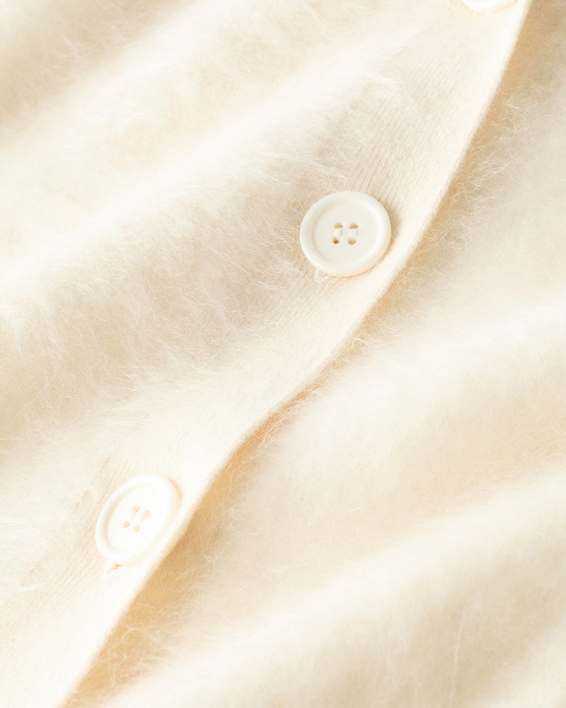 秋冬のリュクス素材の代表選手といえばカシミヤ。今シーズンはシンプルに着こなすだけでなく、ふわふわの起毛加工を施したスペシャルなミンクタッチカシミヤで華やかな装いに。繊維の宝石とも呼ばれる14~18.5μという極細のカシミヤ糸を、丁寧に起毛加工することでふわっとエアリーな起毛テクスチャーに。素材感を堪能できるシンプルなVネックカーディガンは、さっと肩に羽織るだけで、着こなしを華やかにランクアップしてくれます。