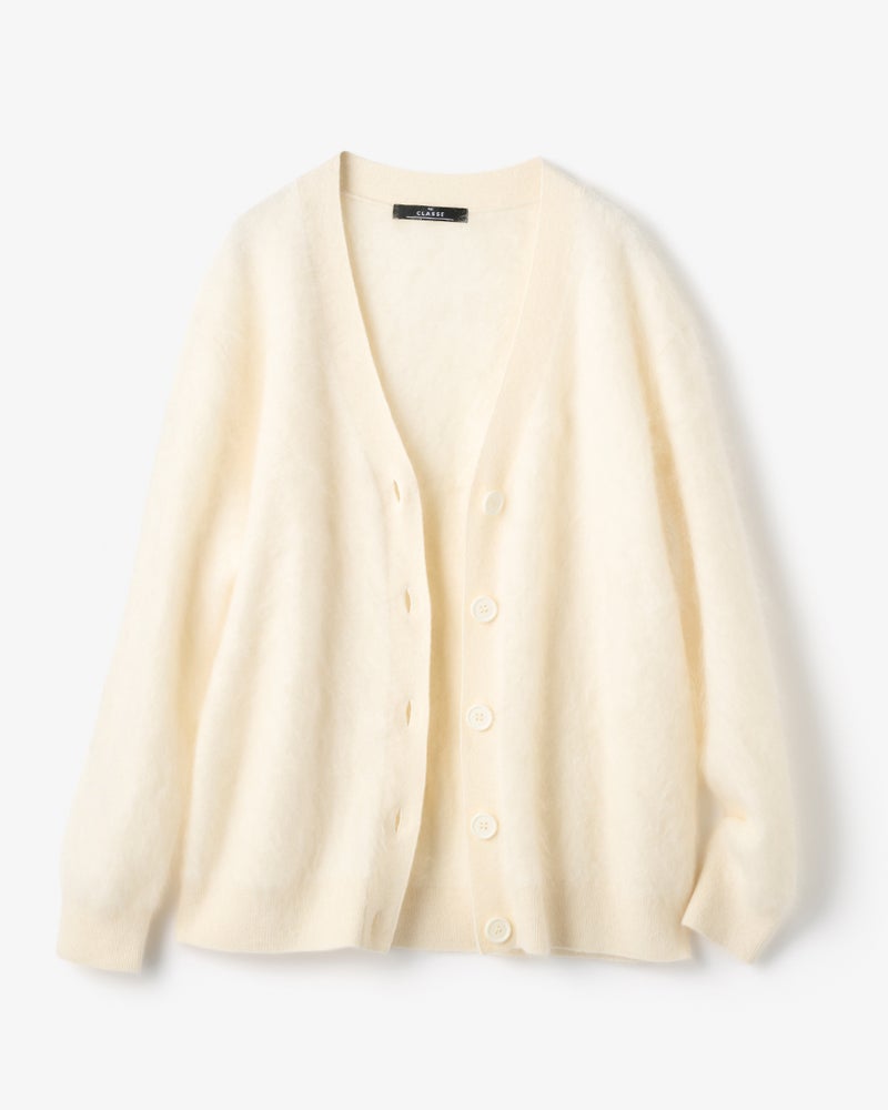秋冬のリュクス素材の代表選手といえばカシミヤ。今シーズンはシンプルに着こなすだけでなく、ふわふわの起毛加工を施したスペシャルなミンクタッチカシミヤで華やかな装いに。 繊維の宝石とも呼ばれる14~18.5μという極細のカシミヤ糸を、丁寧に起毛加工することでふわっとエアリーな起毛テクスチャーに。素材感を堪能できるシンプルなVネックカーディガンは、さっと肩に羽織るだけで、着こなしを華やかにランクアップしてくれます。